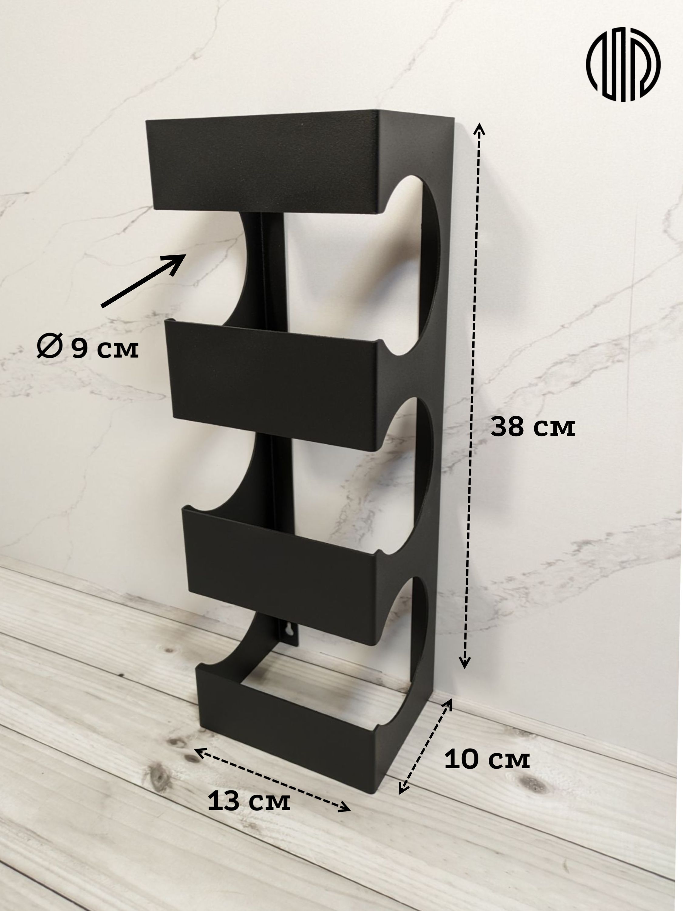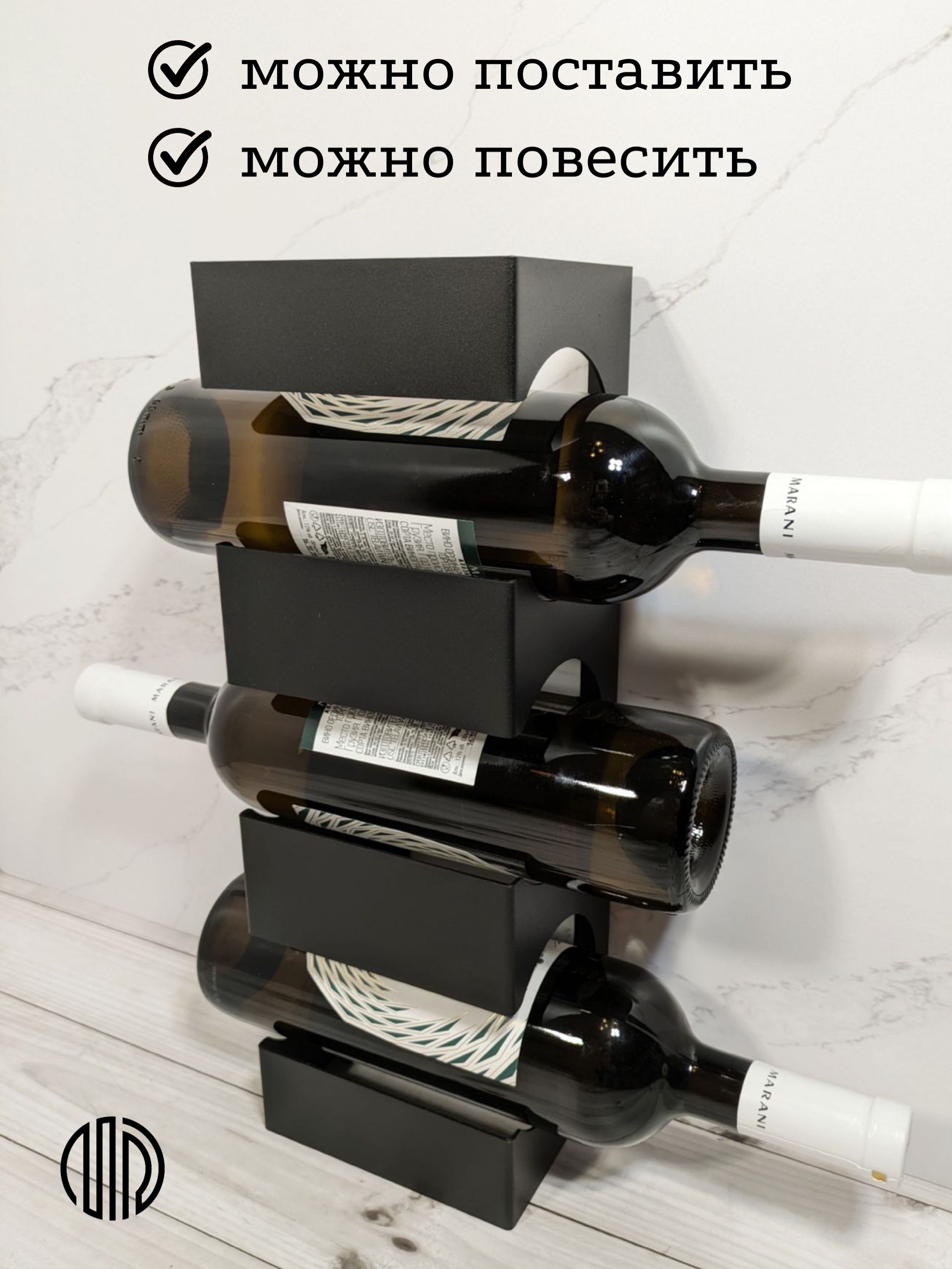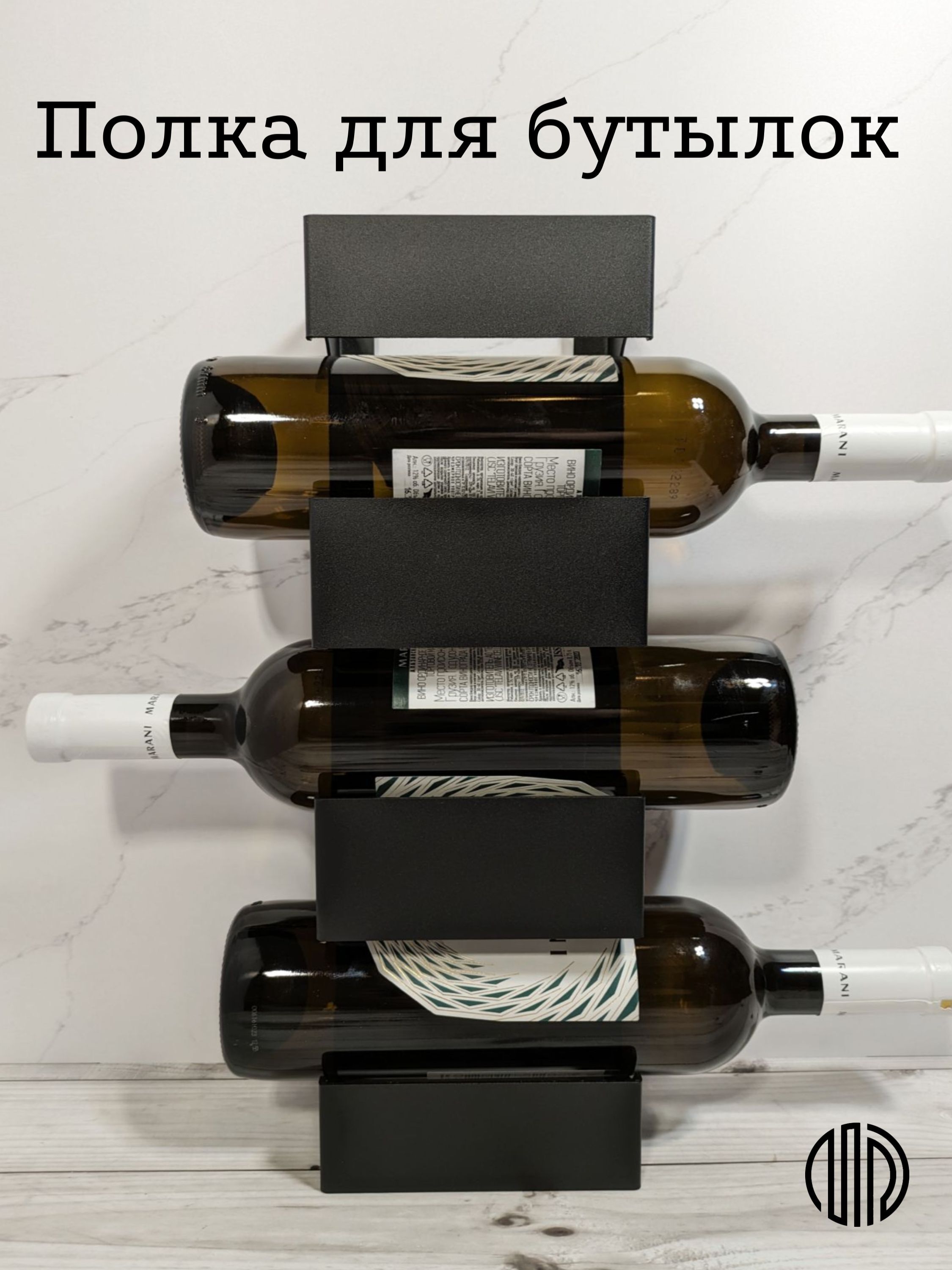 Настенная винная полка - отличное решение для хранения бутылок вина и шампанского для любой кухни, мини бара, барной стойки, ресторанов, кафе или в погребе. Держатель для винных бутылок не только обеспечивает надежное и удобное хранение, но также является стильным элементом декора, который украсит любой интерьер от современного до стиля ЛОФТ. Полка для вина выполнена из прочного металла 1.5мм в чёрном матовом цвете, вмещает до 5 бутылок.
