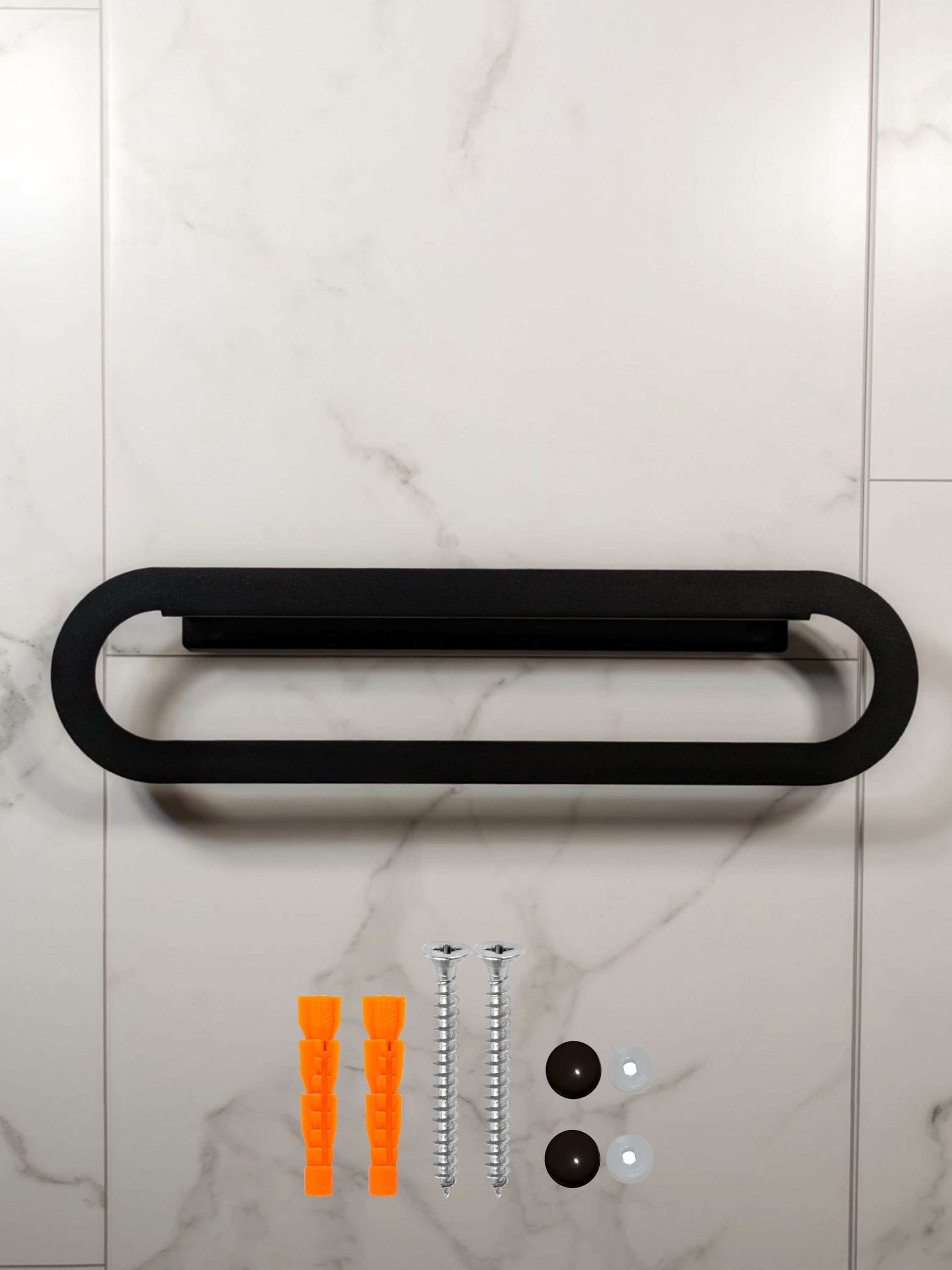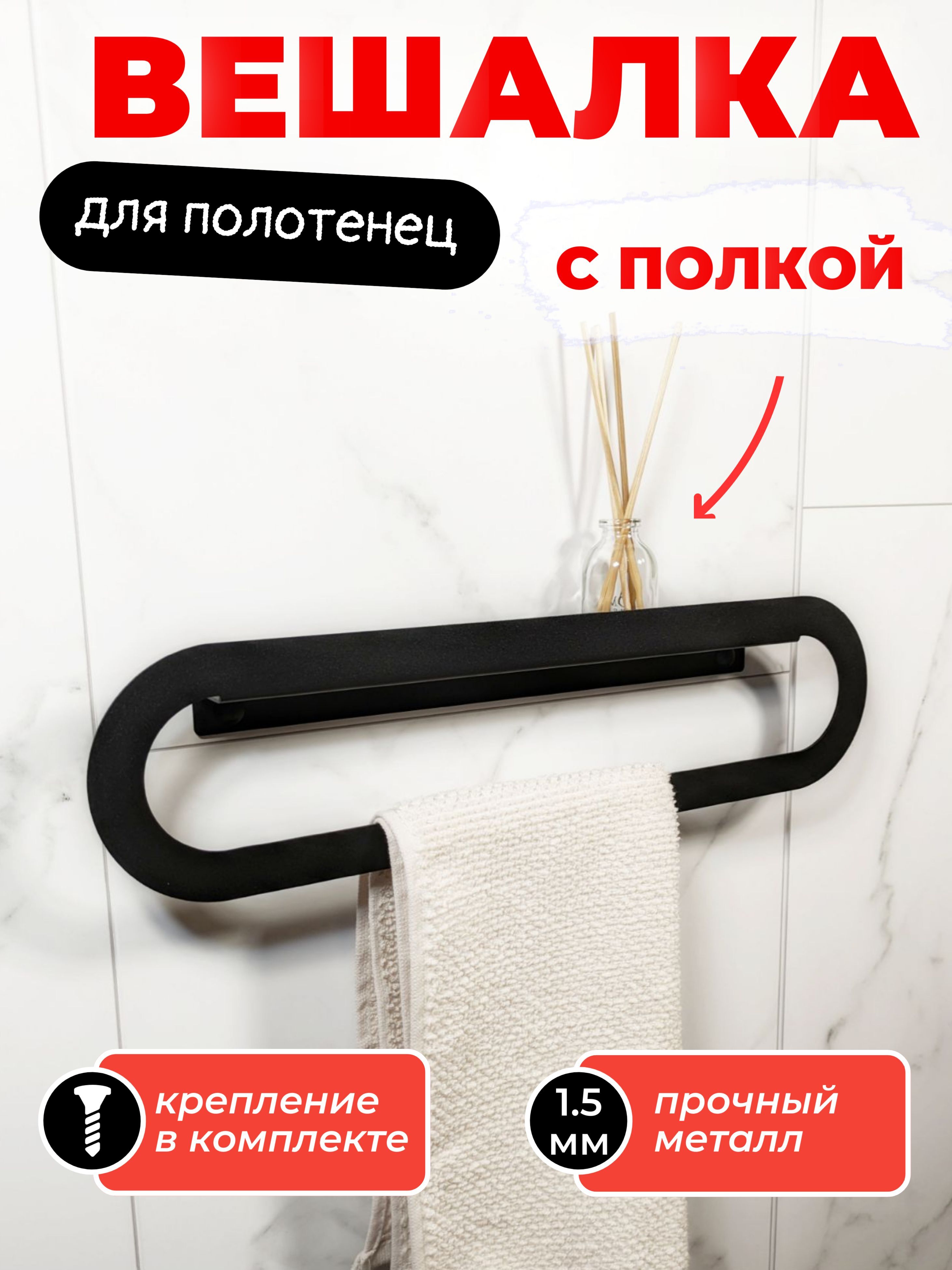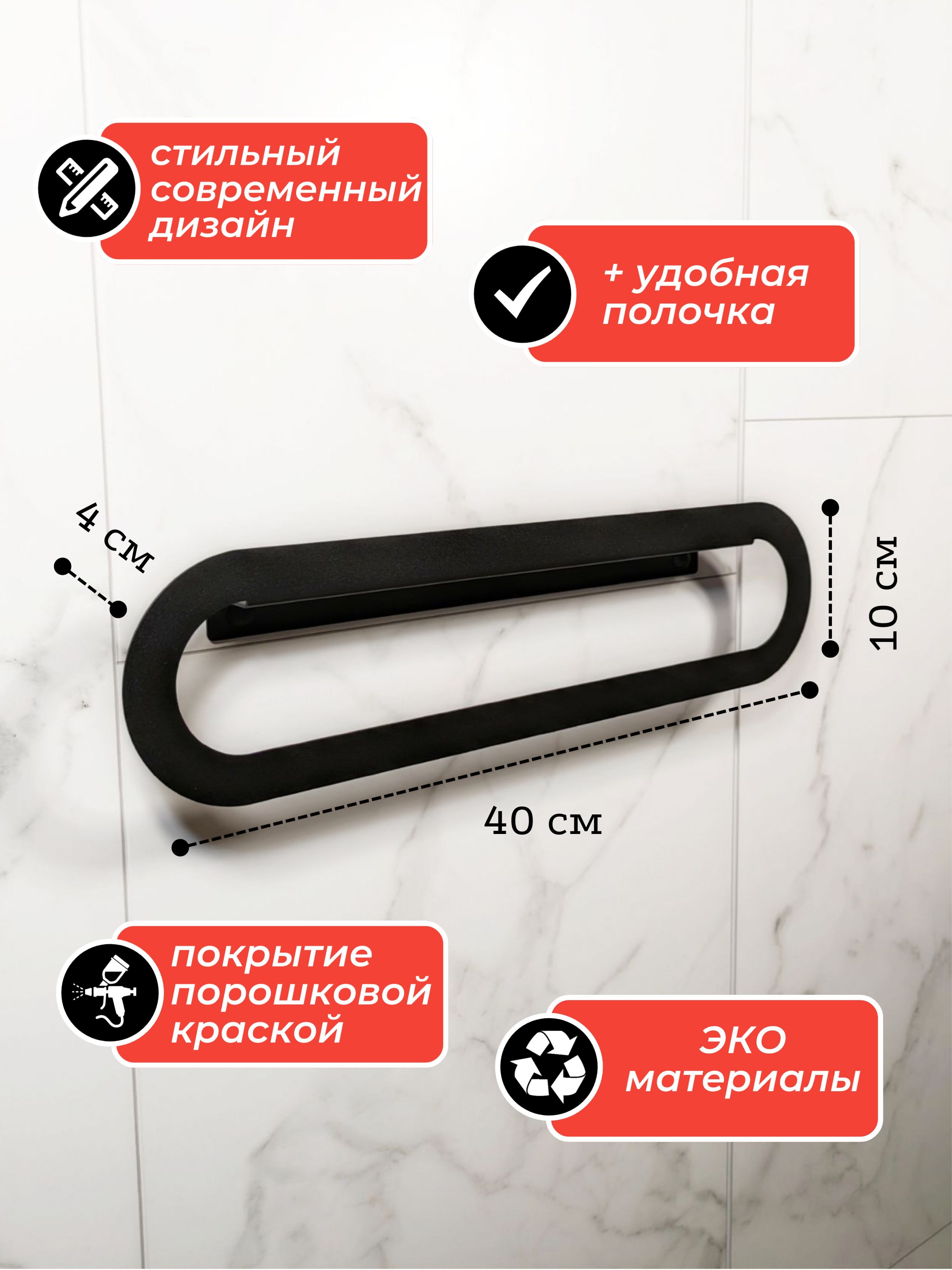 Cовременный дизайн и стильный цвет подчеркнут современный облик вашей ванной комнаты. Полка для полотенец изготовлена из металла толщиной 1.5мм с полимерным покрытием черного цвета, обеспечивающего долговечность и эстетический внешний вид.Добавьте функциональность и стиль в вашу ванную комнату с нашей вешалкой для полотенца.