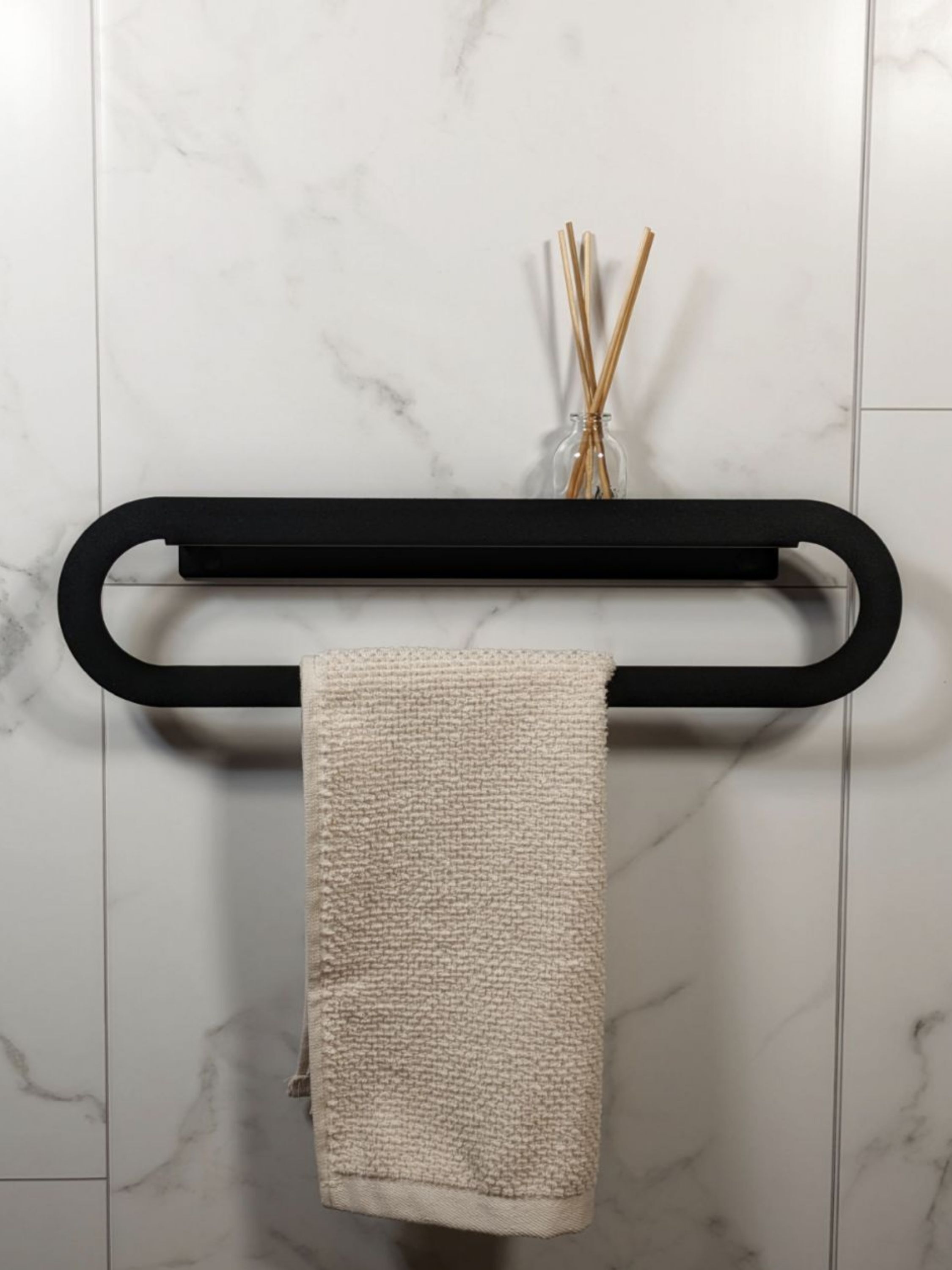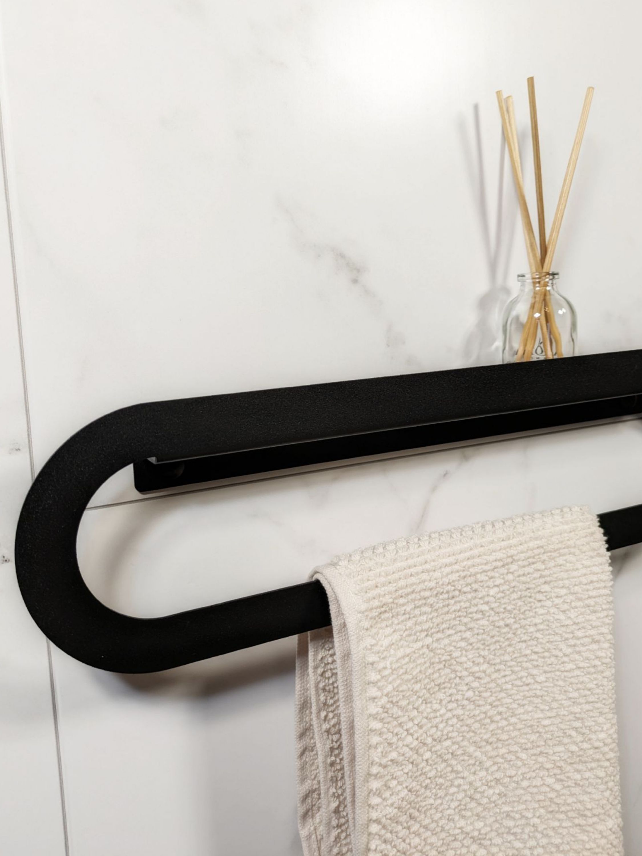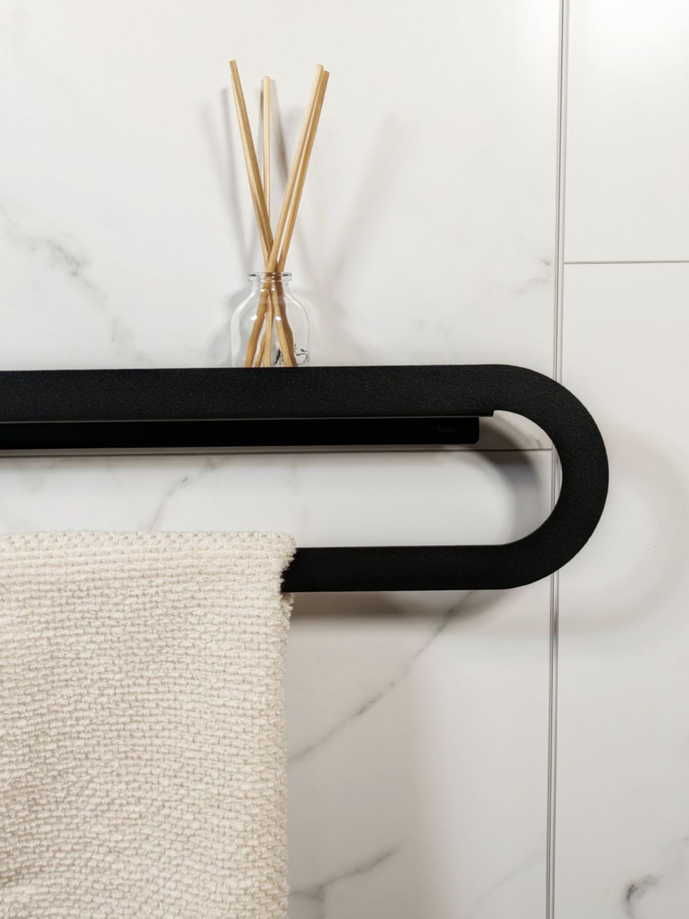 Cовременный дизайн и стильный цвет подчеркнут современный облик вашей ванной комнаты. Полка для полотенец изготовлена из металла толщиной 1.5мм с полимерным покрытием черного цвета, обеспечивающего долговечность и эстетический внешний вид.Добавьте функциональность и стиль в вашу ванную комнату с нашей вешалкой для полотенца.