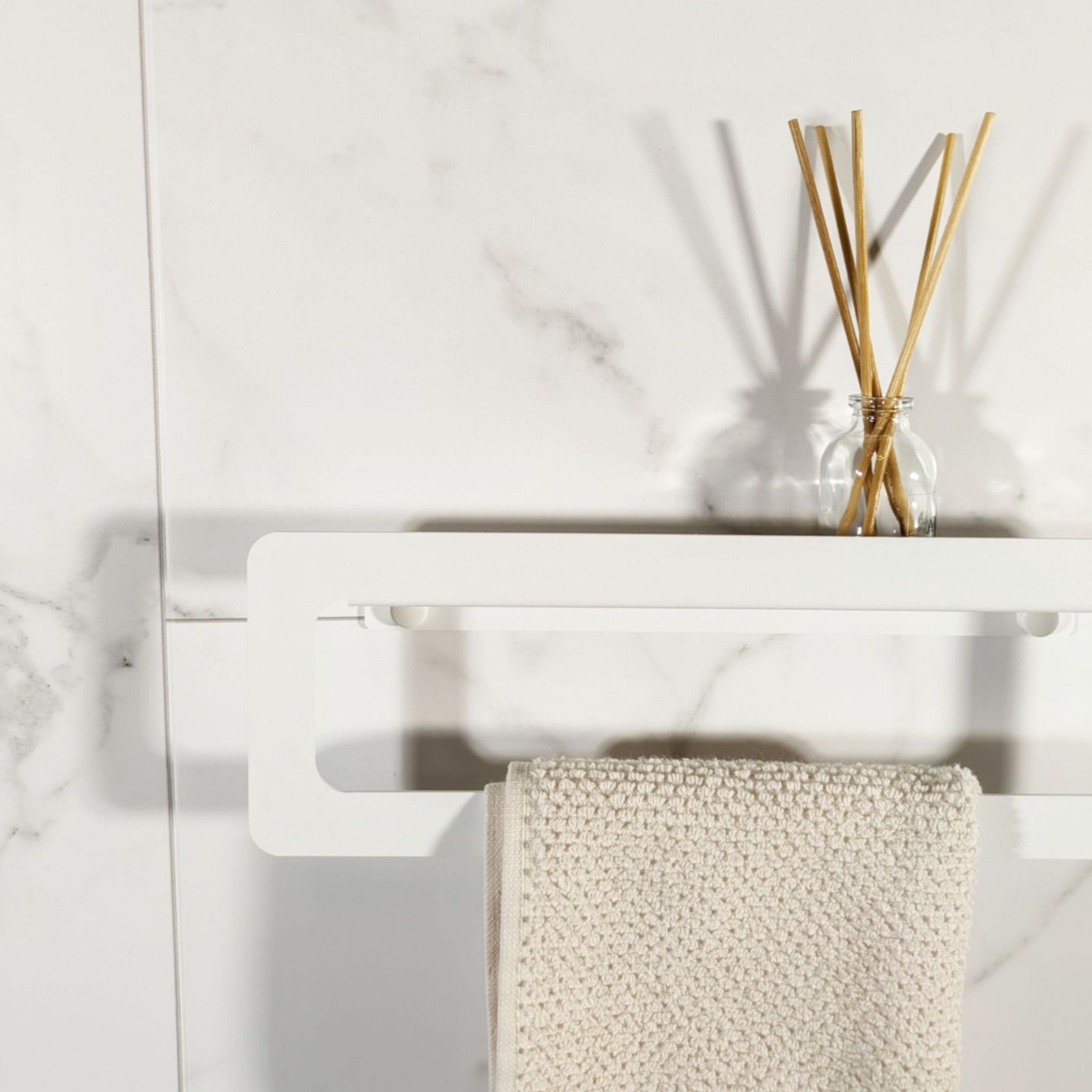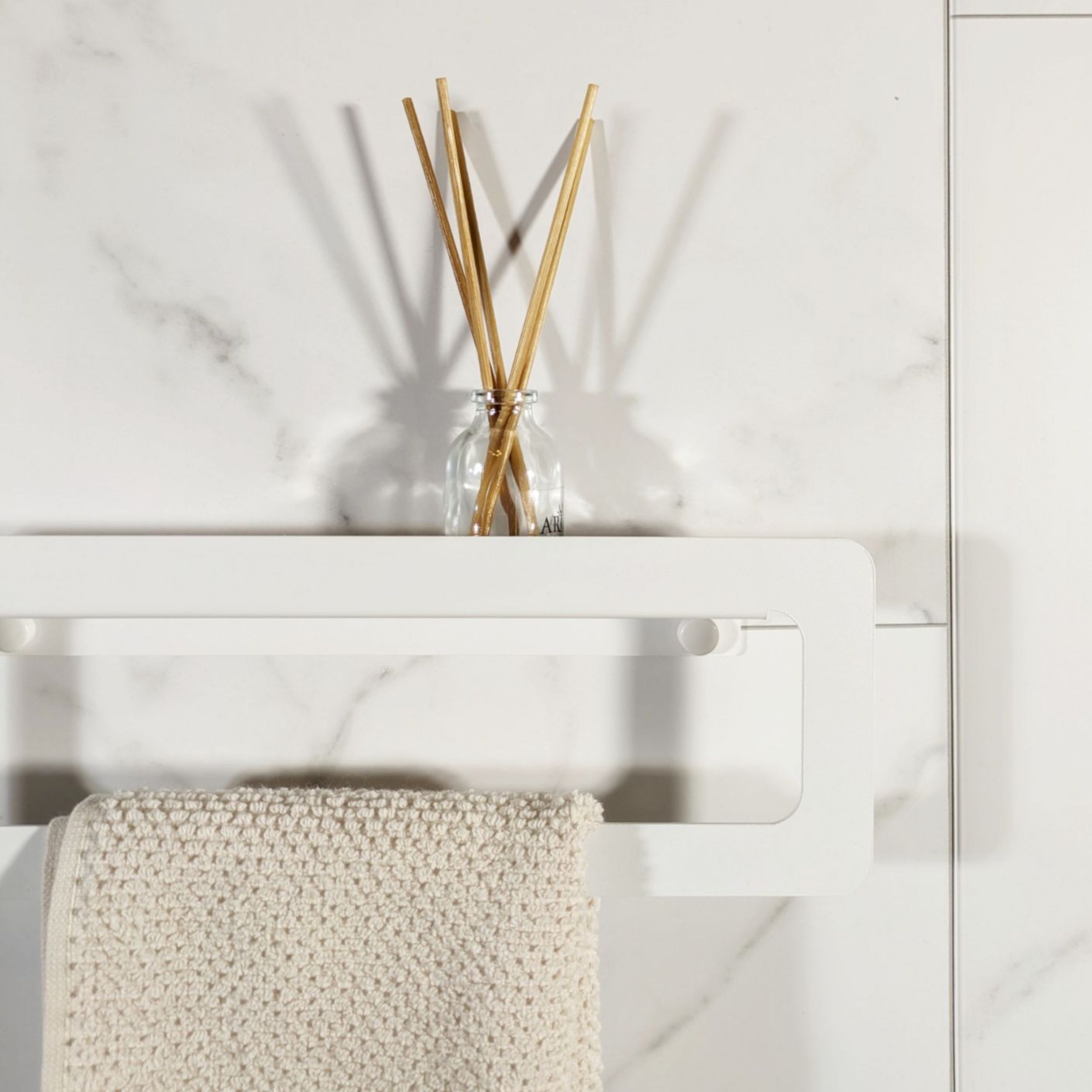 Современный дизайн и стильный цвет подчеркнут современный облик вашей ванной комнаты. Полка для полотенец изготовлена из металла толщиной 1.5мм с полимерным покрытием белого цвета, обеспечивающего долговечность и эстетический внешний вид.Добавьте функциональность и стиль в вашу ванную комнату с нашим органайзером для полотенца.