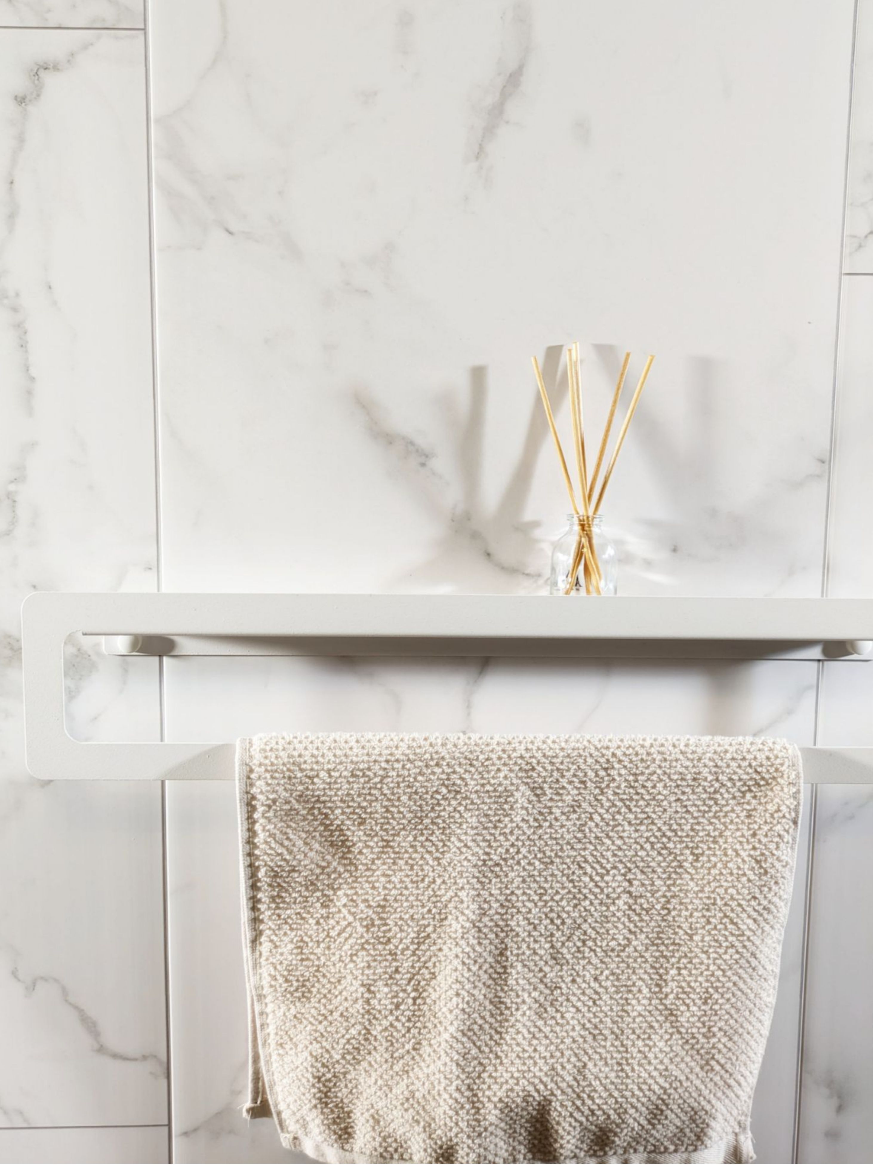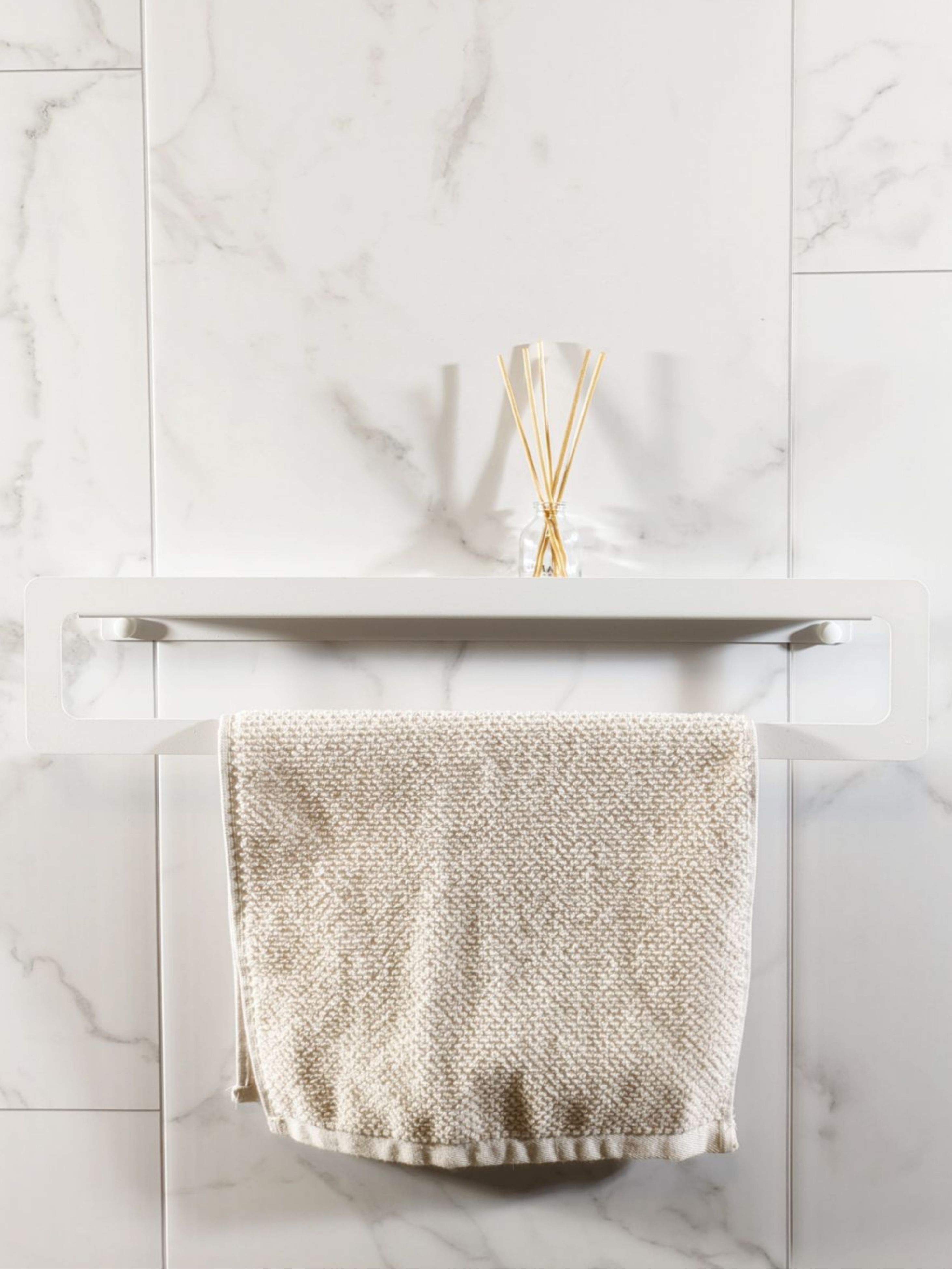 Современный дизайн и стильный цвет подчеркнут современный облик вашей ванной комнаты. Полка для полотенец изготовлена из металла толщиной 1.5мм с полимерным покрытием белого цвета, обеспечивающего долговечность и эстетический внешний вид.Добавьте функциональность и стиль в вашу ванную комнату с нашим органайзером для полотенца.
