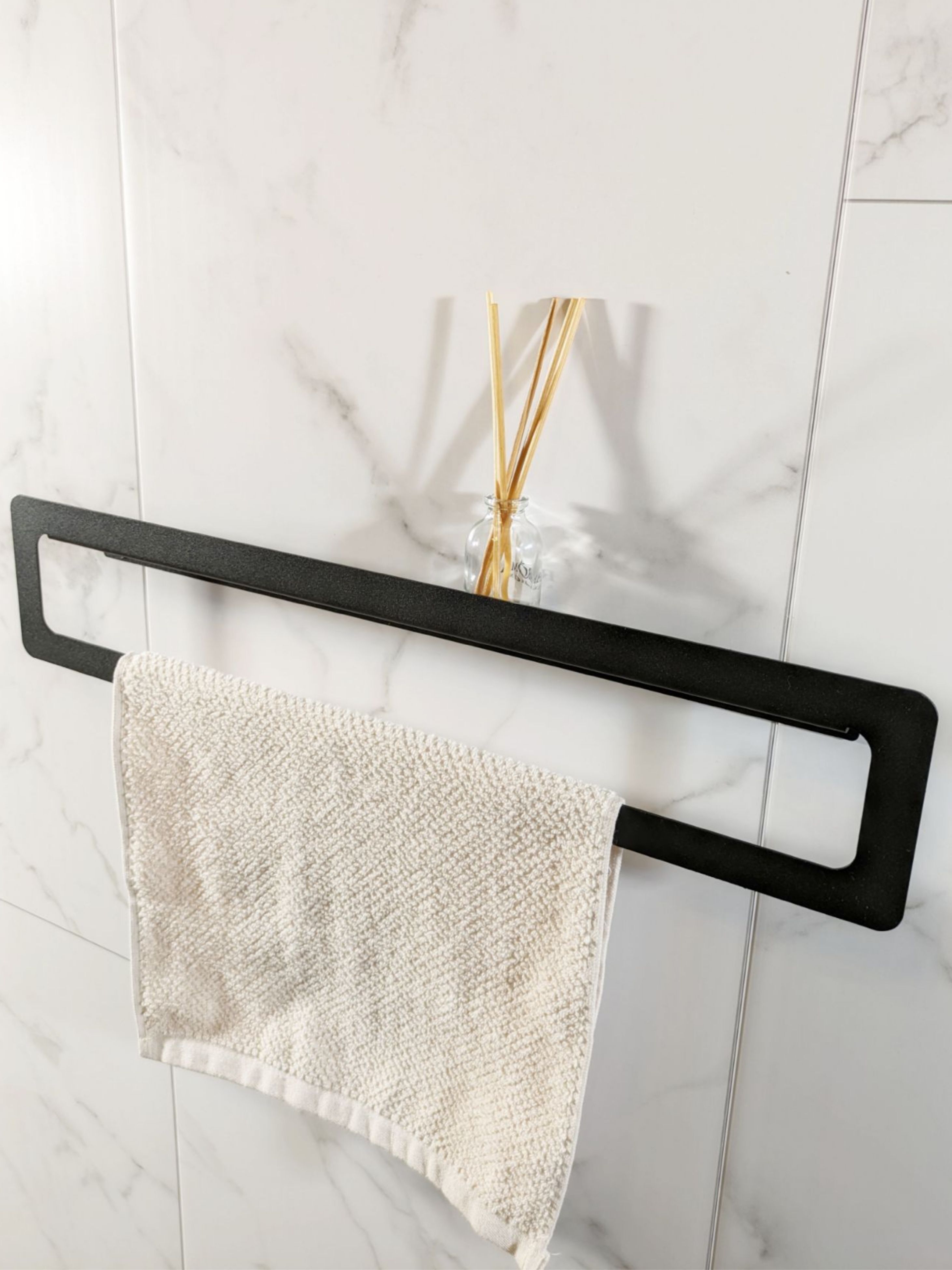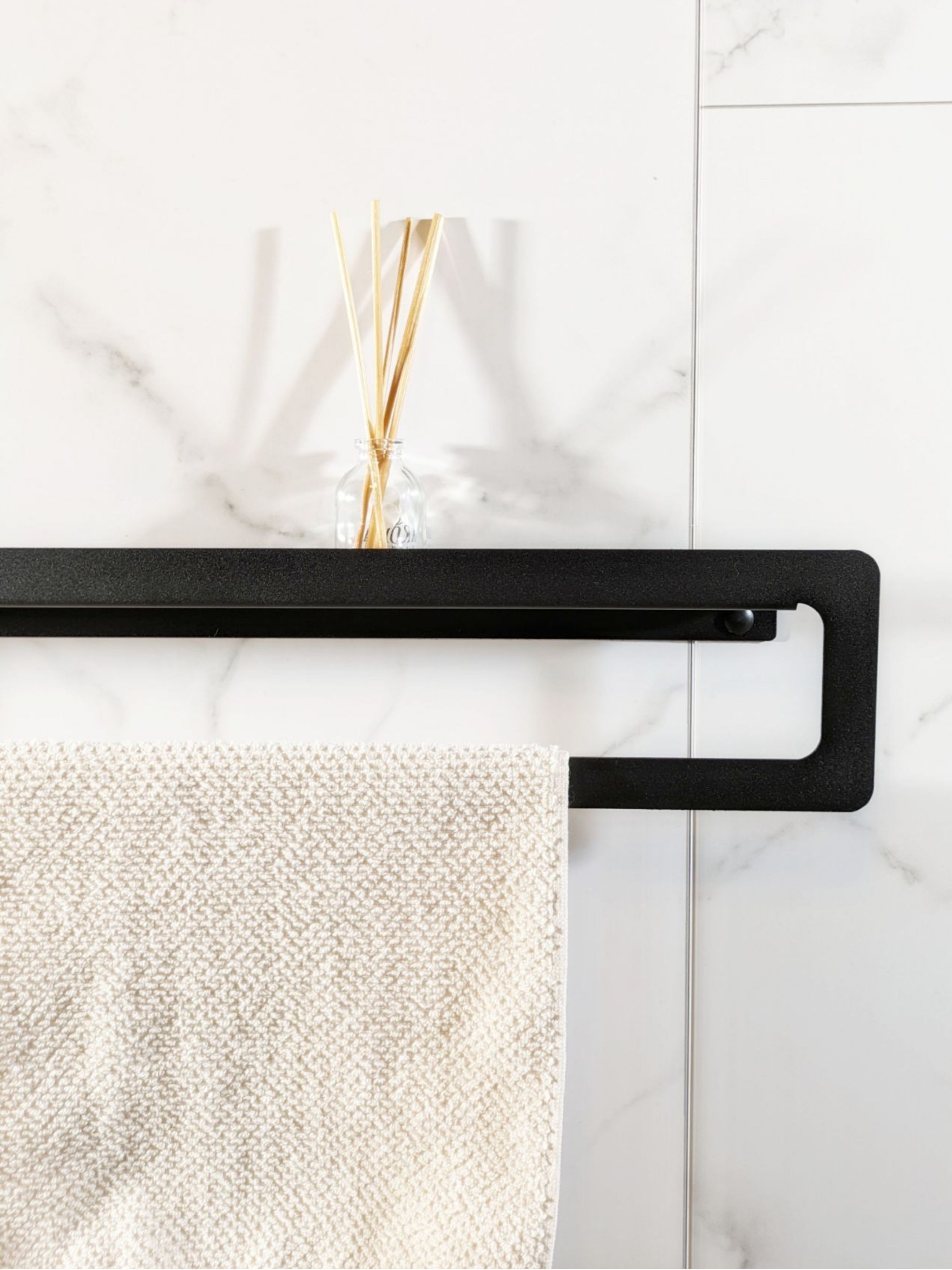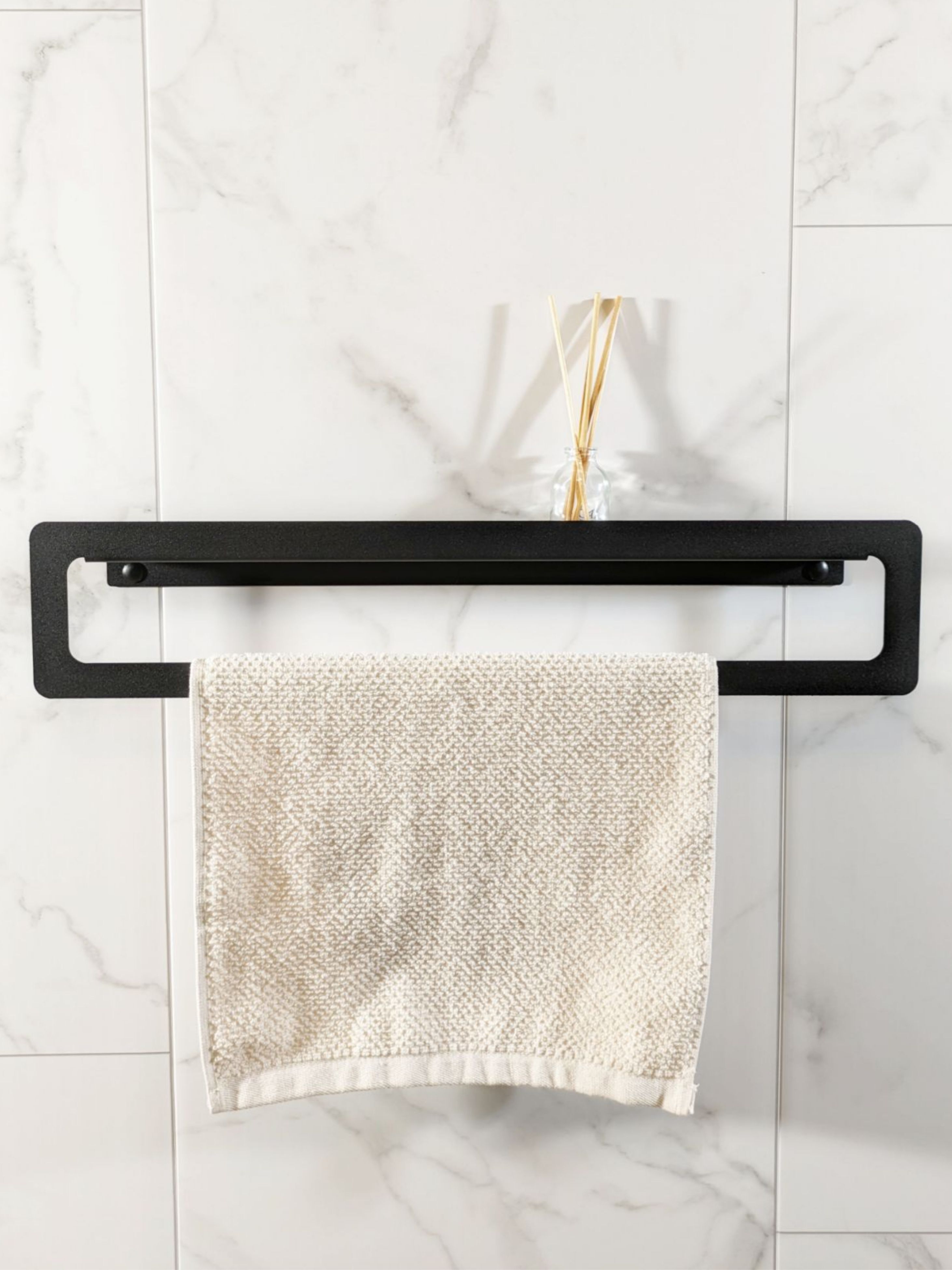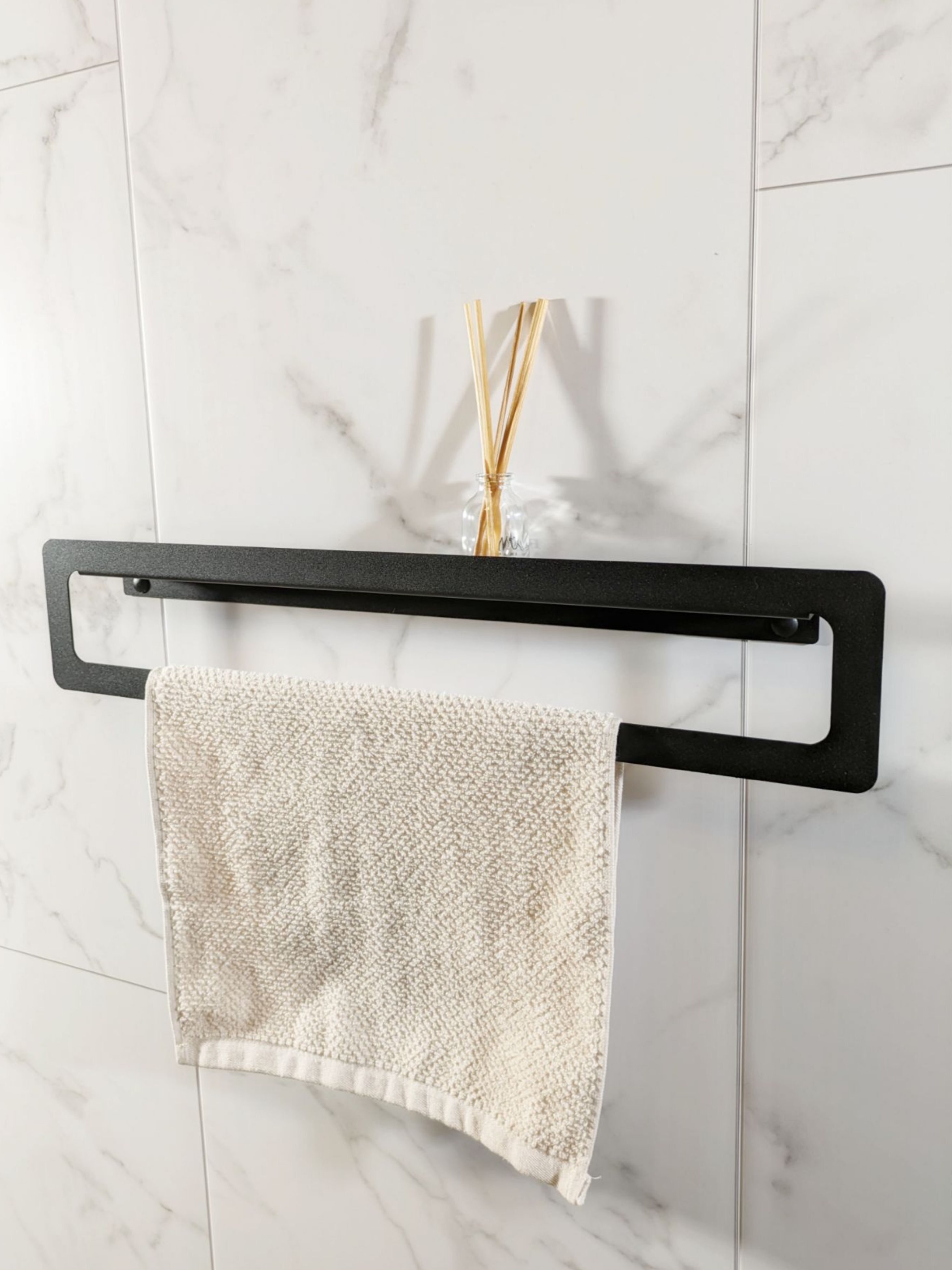 Современный дизайн и стильный цвет подчеркнут современный облик вашей ванной комнаты. Полка для полотенец изготовлена из металла толщиной 1.5мм с полимерным покрытием черного цвета, обеспечивающего долговечность и эстетический внешний вид.Добавьте функциональность и стиль в вашу ванную комнату с нашим органайзером для полотенца.