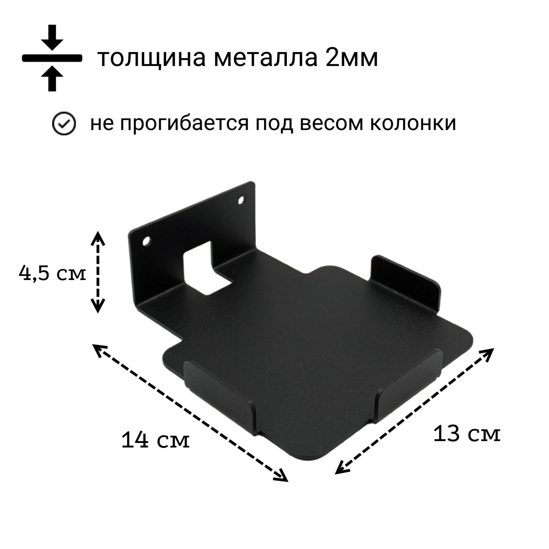 Надежный и крепкий настенный кронштейн для Яндекс станции 2 – отличное решение для крепления Вашей умной колонки второго поколения, поскольку совмещает в себе стильный дизайн, превосходную надежность и качество. Держатель для аудиоколонки второго поколения отлично вписывается в любой интерьер (как классический, так и современный). Крепкая конструкционная сталь толщиной 2 мм, из которой изготовлена настенная подставка для Яндекс станции два, исключает возможность прогибов, изгибов и поворотов кронштейна при использовании.