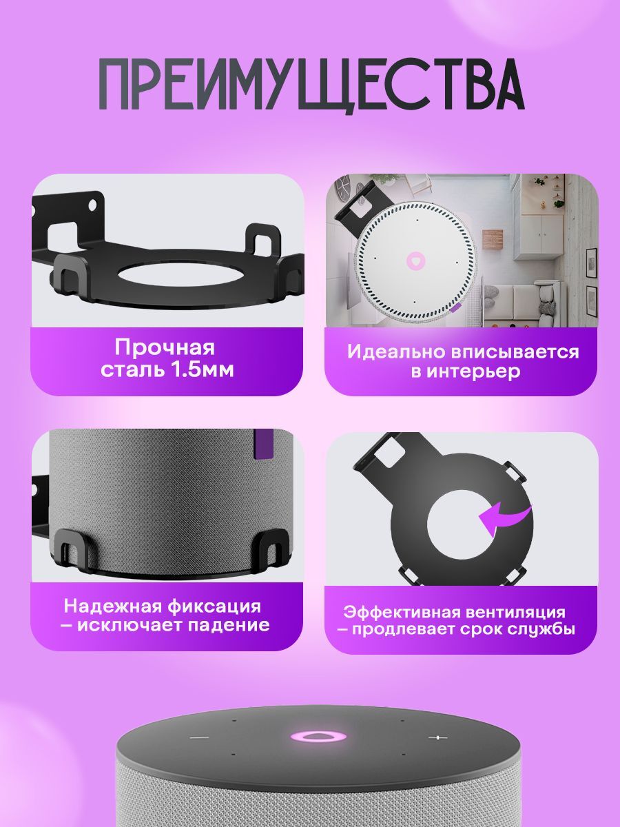 Надежный и крепкий настенный кронштейн для Яндекс станции Мини – отличное решение для крепления Вашей умной колонки, поскольку совмещает в себе стильный дизайн, превосходную надежность и качество. Держатель для аудиоколонки отлично вписывается в любой интерьер (как классический, так и современный). Специальный паз для установки умной колонки Яндекс надежно фиксирует ее на кронштейне, исключая возможность ее падения, а также, обеспечивая эффективную вентиляцию устройства тем самым защищая ее от перегрева и продлевая срок службы. Крепкая конструкционная сталь толщиной 1,5 мм, из которой изготовлена настенная подставка для Яндекс станции Мини с часами, исключает возможность прогибов, изгибов и поворотов кронштейна при использовании. Настенная подставка для Yandex станции Макс позволит зафиксировать портативную колонку на удобном месте и обезопасить устройство от случайного падения, теперь можно не беспокоиться, что провода перегрызут домашние питомцы или дети случайно уронят гаджет. В комплекте с кронштейном для умной колонки идут нужные для фиксации на стене крепления (дюбели и саморезы). Устанавливается путем сверления. В наборе есть заглушки для маскировки крепежей.