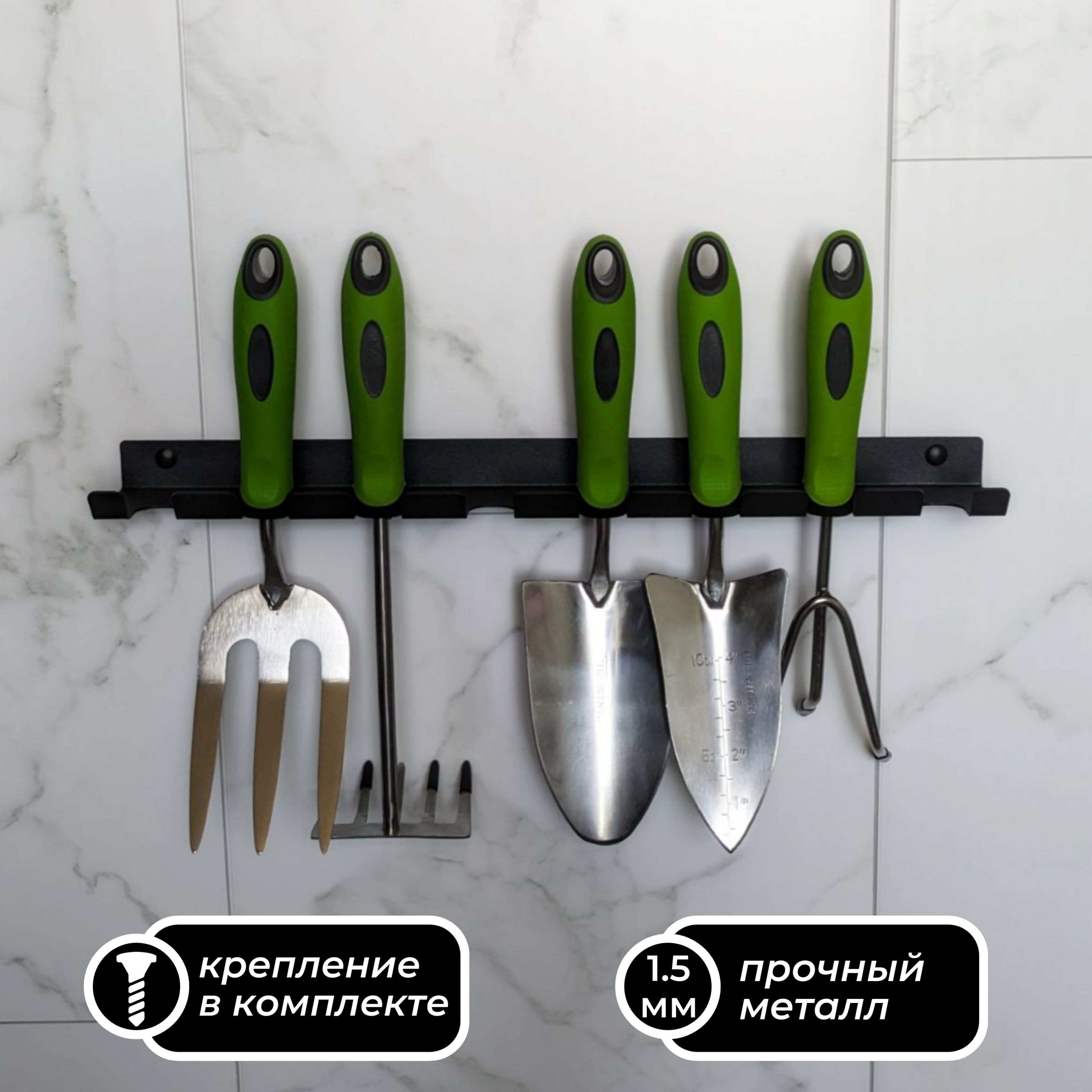 С этим удобным аксессуаром вы сможете в одном месте собрать и упорядочить свои садовые инструменты, делая работу в саду более эффективной и приятной.Кронштейн для садового инвентаря изготовлен из качественного прочного металла, обеспечивающего долговечность и надежность. Компактный дизайн позволяет экономно использовать пространство и установить держатель на стену гаража, сарая или веранды.