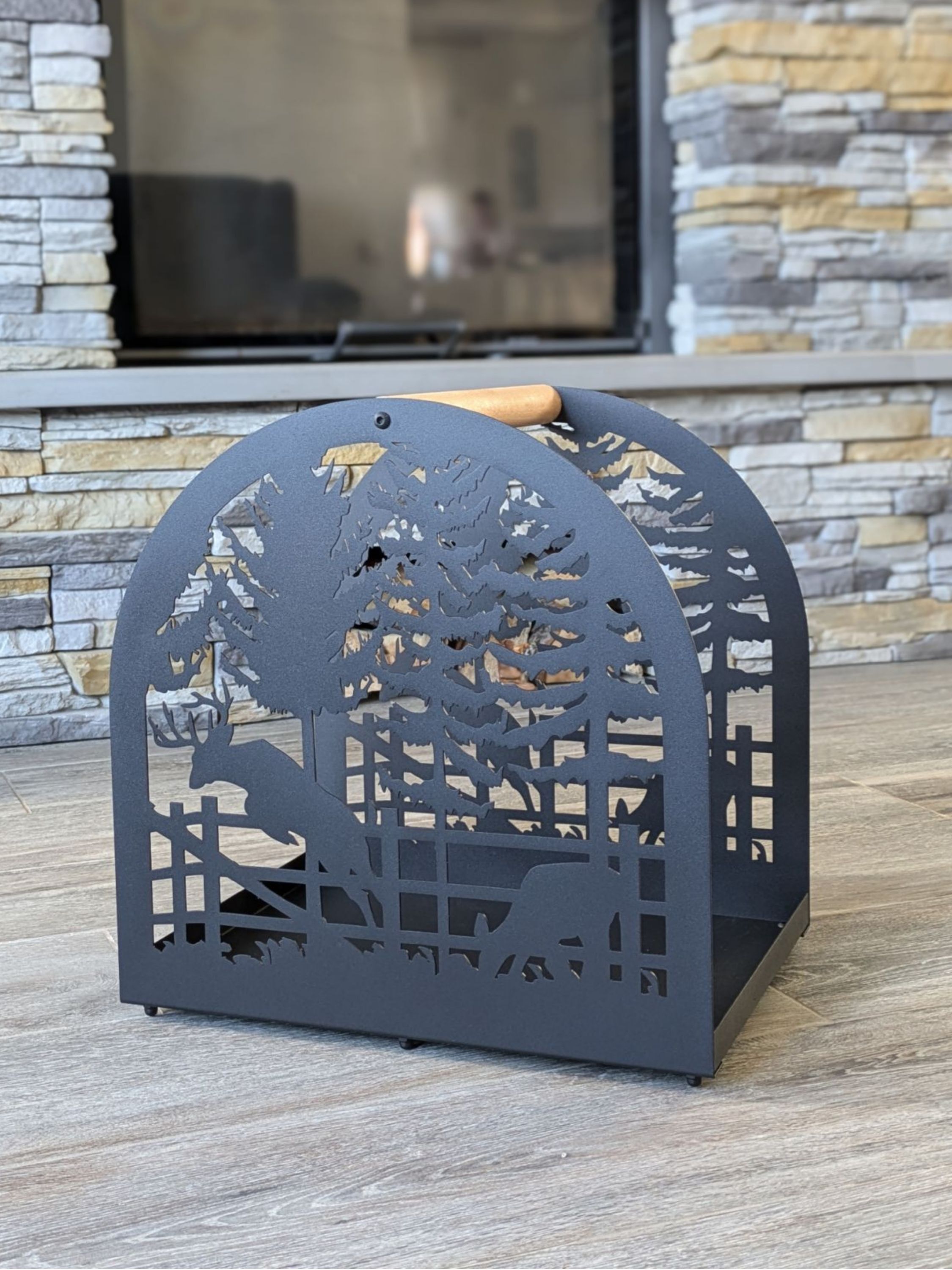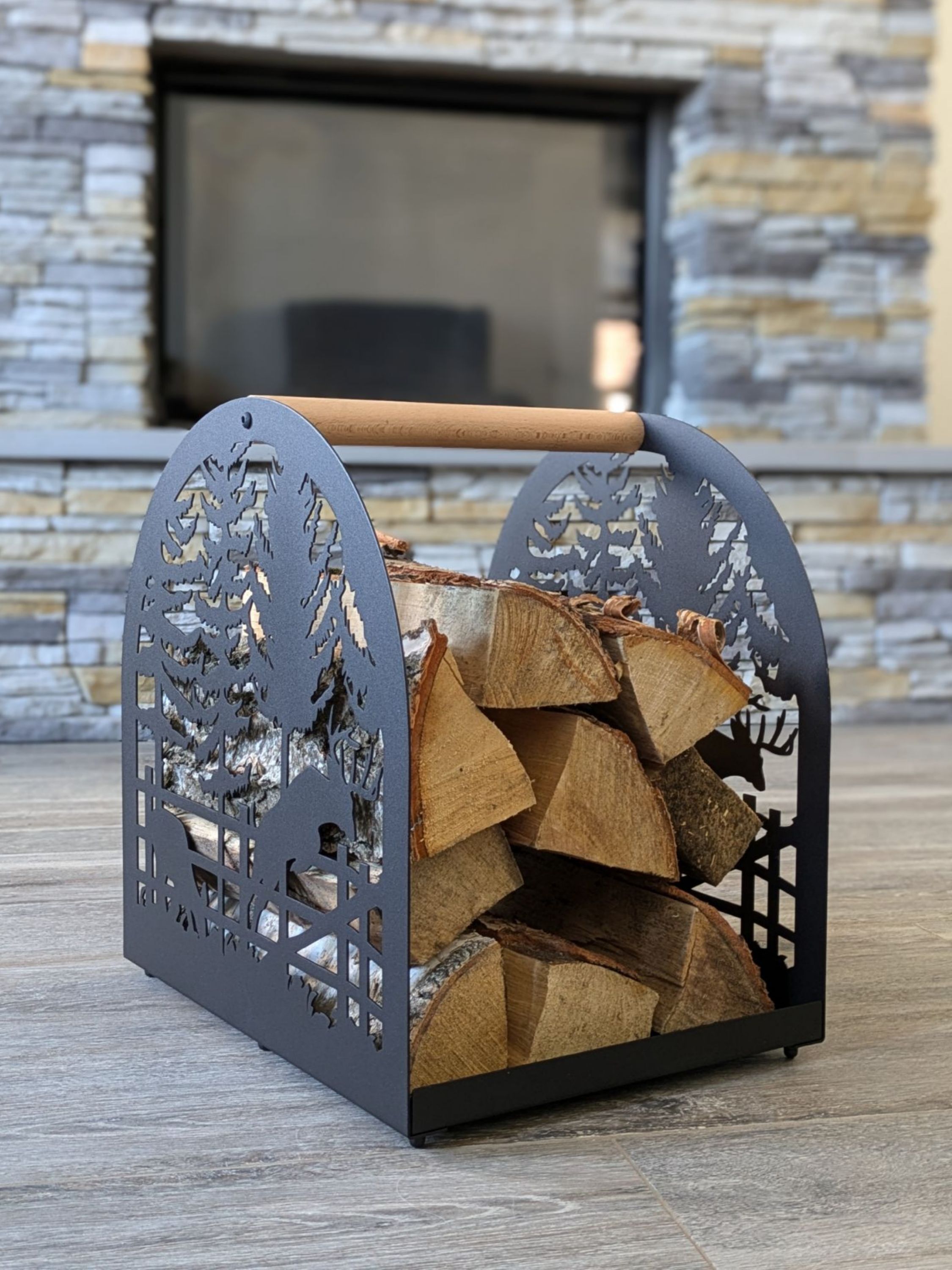 Переноска для дров выполнена из стали 1.5мм и окрашена порошковой краской, за счет чего прослужит вам долгие годы. Дровник имеет сборно-разборную конструкцию и легко собирается, а при необходимости разбирается и не занимает много места. Ручка сделана из натурального дерева и покрыта прозрачным лаком, что придает дровницы премиальный вид.
