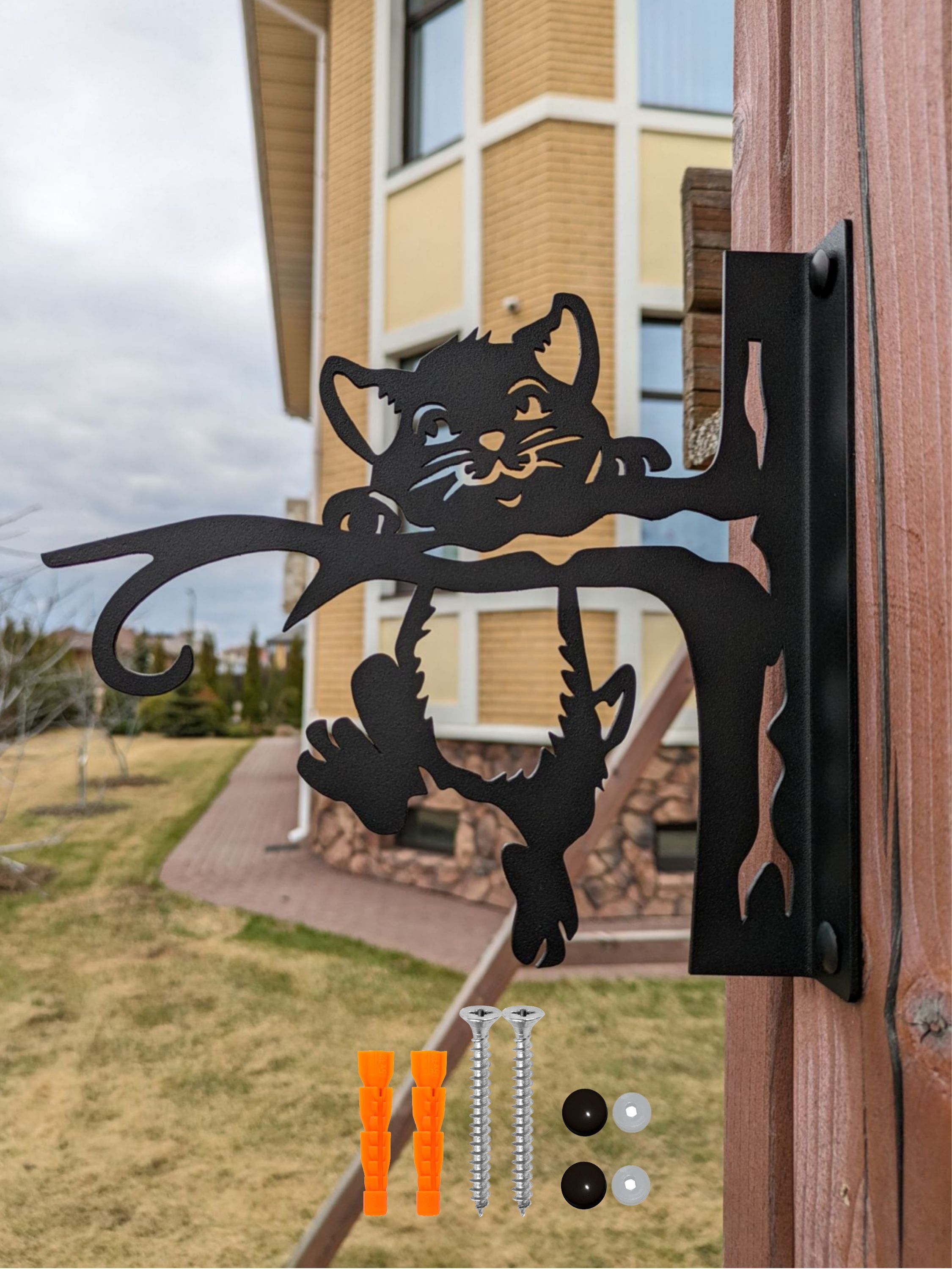 Садовый держатель выполнен из прочного метала, толщиной 2 мм и покрыт качественной порошковой краской, поэтому долго сохранит свой внешний вид при использовании на улице в любых погодных условиях. Уличный подвес для горшков представлен в стильном и универсальном дизайне, который впишется в любой интерьер и добавит уюта вашему дому. Подставка для цветов настенная отлично подойдет как держатель для садового фонаря.