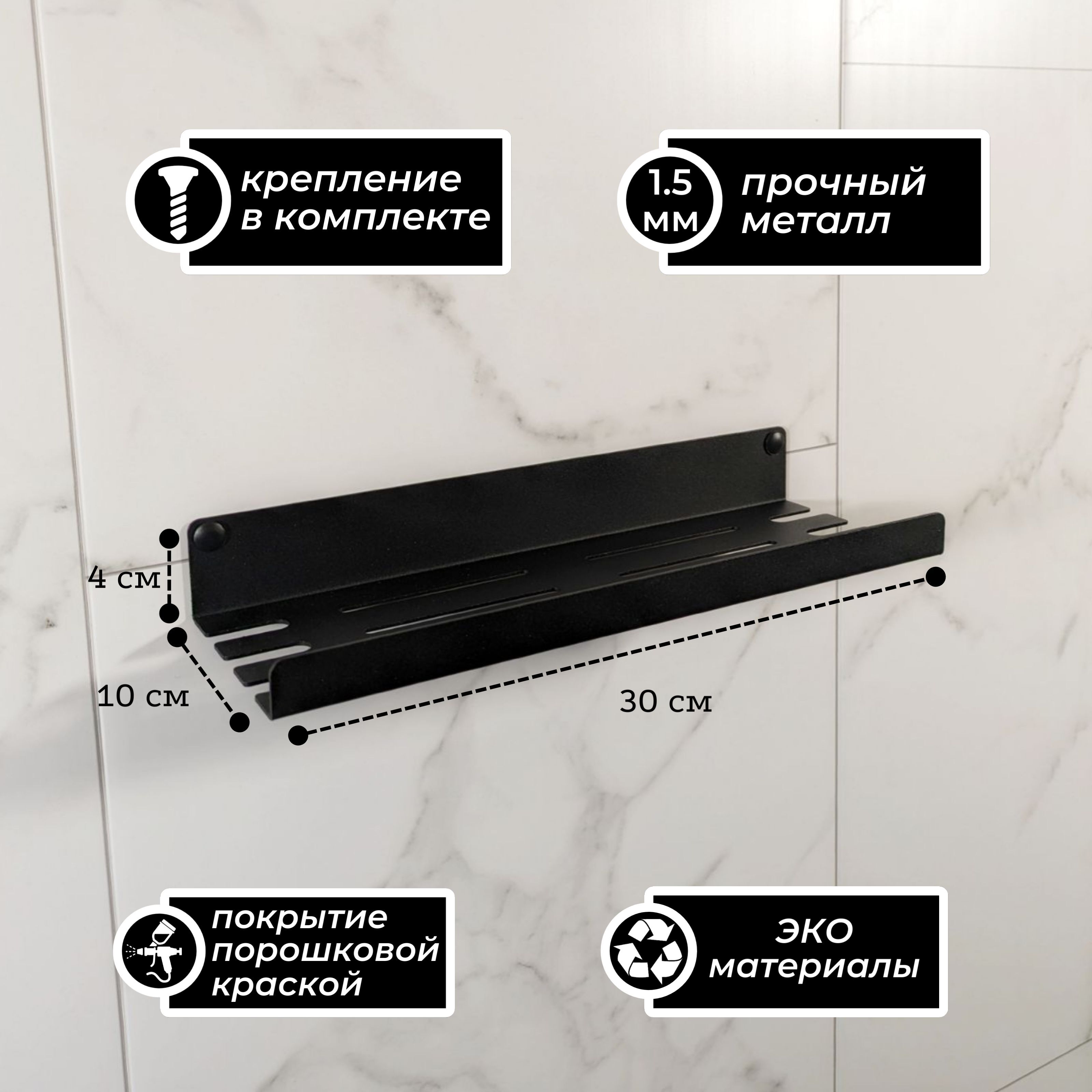 Созданная специально для использования во влажных условиях, она отлично подойдет как полка для ванной комнаты, где вы сможете удобно разместить ваши моющее средства, косметику и аксессуары. Изготовлена из качественной стали и окрашена порошковой краской с эффектом "муар". Данный эффект придает текстуру на изделии создавая неповторимый внешний вид, защищая от коррозии и окисления на длительное время пользования.