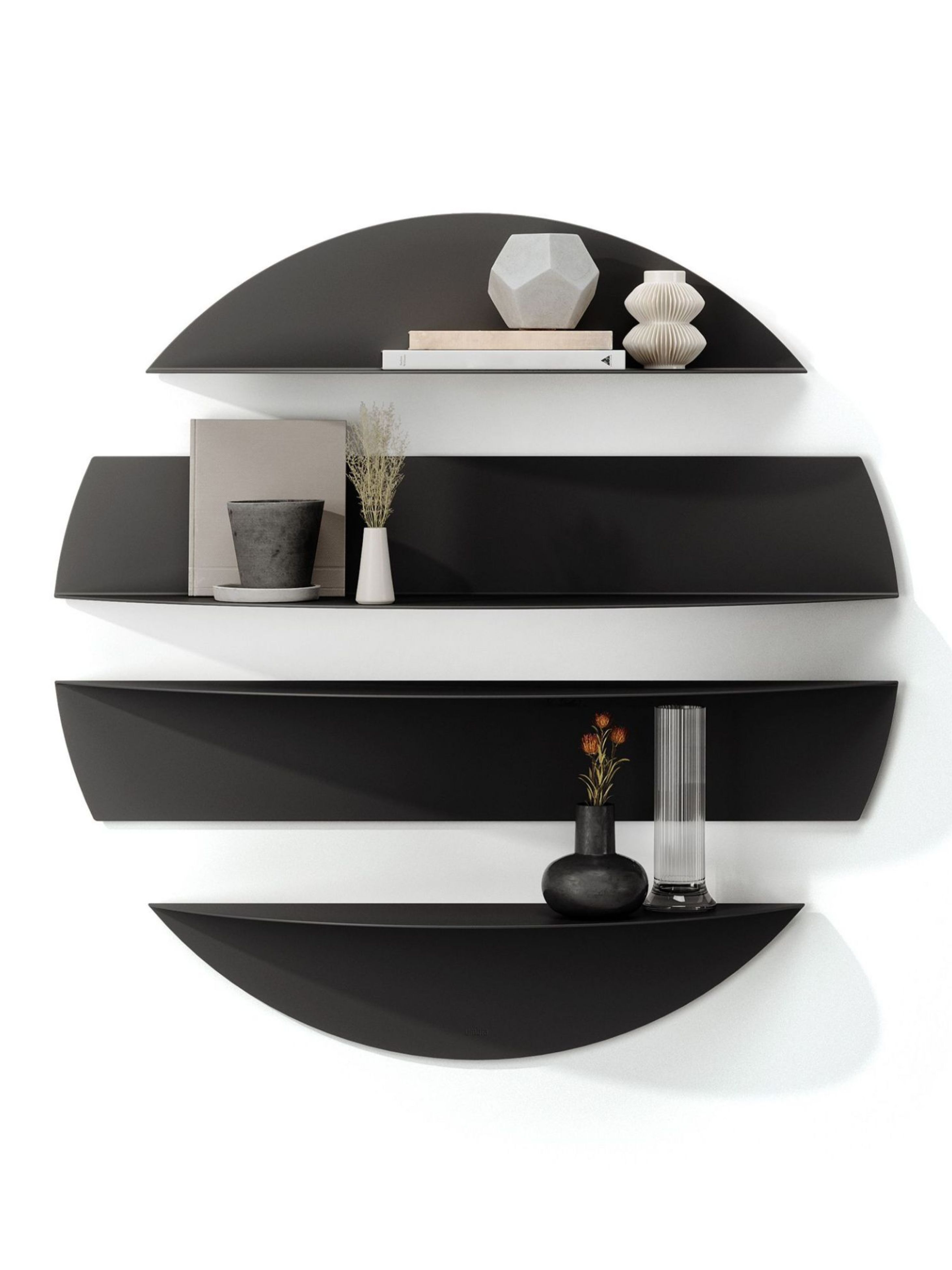 Комплект включает в себя четыре полки различных размеров, что позволяет создать уникальную композицию на стене в виде круга или овала и подчеркнуть индивидуальный стиль вашего помещения. Вы можете расположить полки как по отдельности, так и вместе, создавая интересные композиции и играя с пространством.