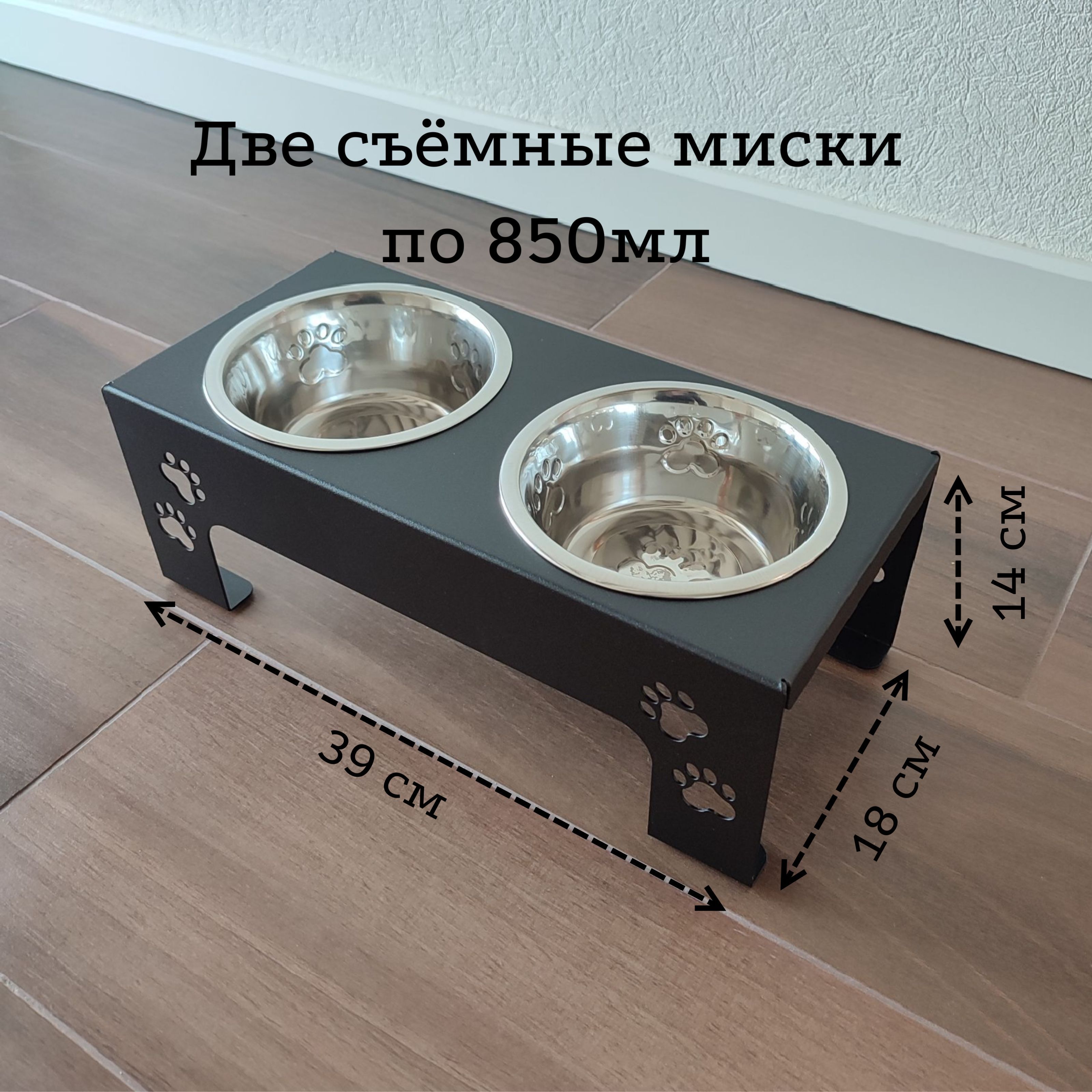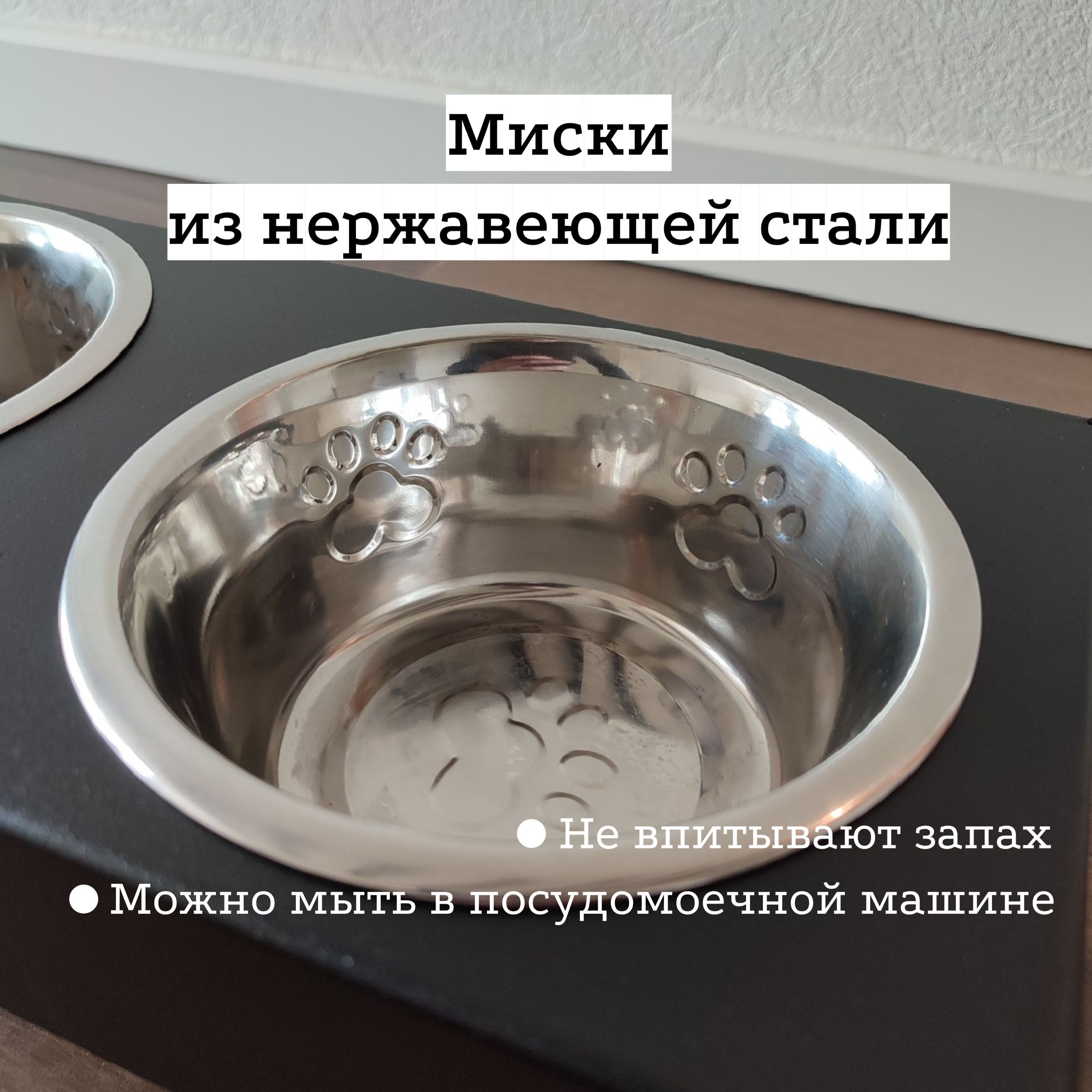 Миски на подставке (объем миски 850мл) является удобным решением для Вашего любимого питомца. Миски из нержавеющей стали. Материал мисок безвреден для здоровья животных, легко моется в посудомоечной машине.