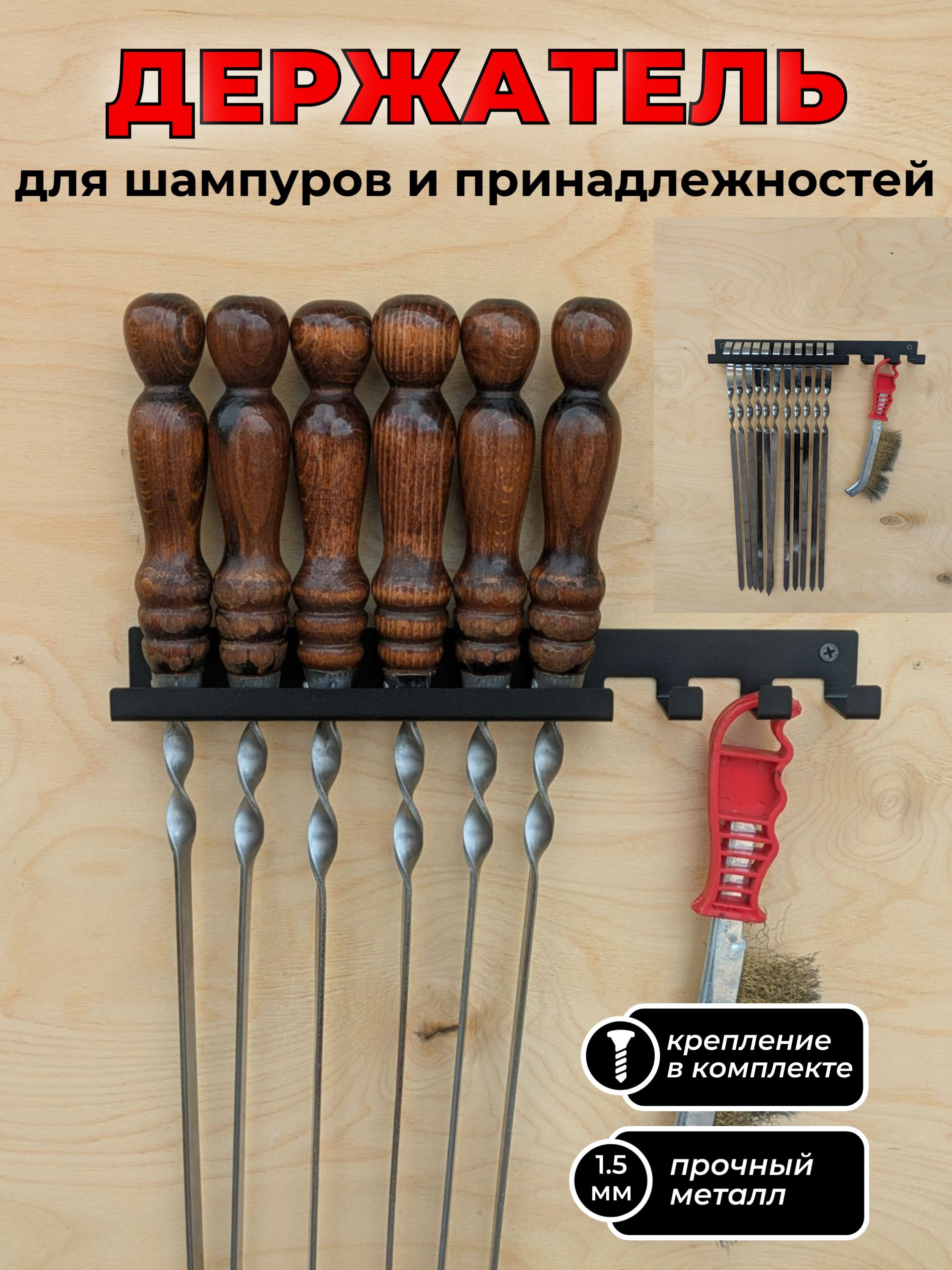 Подставка для шампуров настенная" - это функциональный и стильный аксессуар, который облегчит хранение и организацию шампуров в вашей кухне или на гриле. Установив эту удобную подставку на стену, вы сможете удобно хранить ваши шампуры в безопасном и доступном месте.