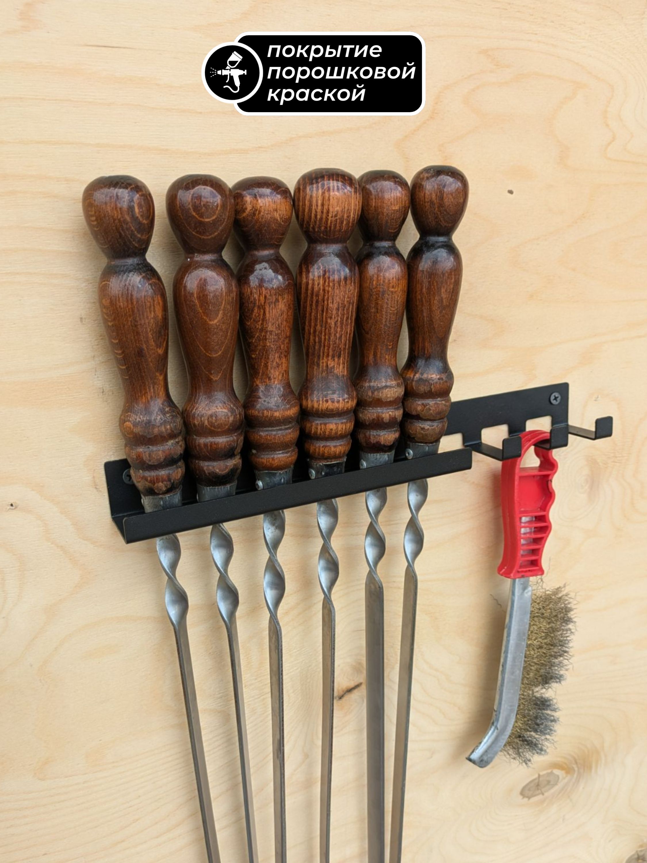 Изготовленная из качественного материала, настенная подставка для шампуров обеспечивает надежную фиксацию инструментов и защиту от повреждений. Ее удобная конструкция позволяет легко и компактно разместить шампуры, экономя место на кухонной поверхности или рядом с грилем.