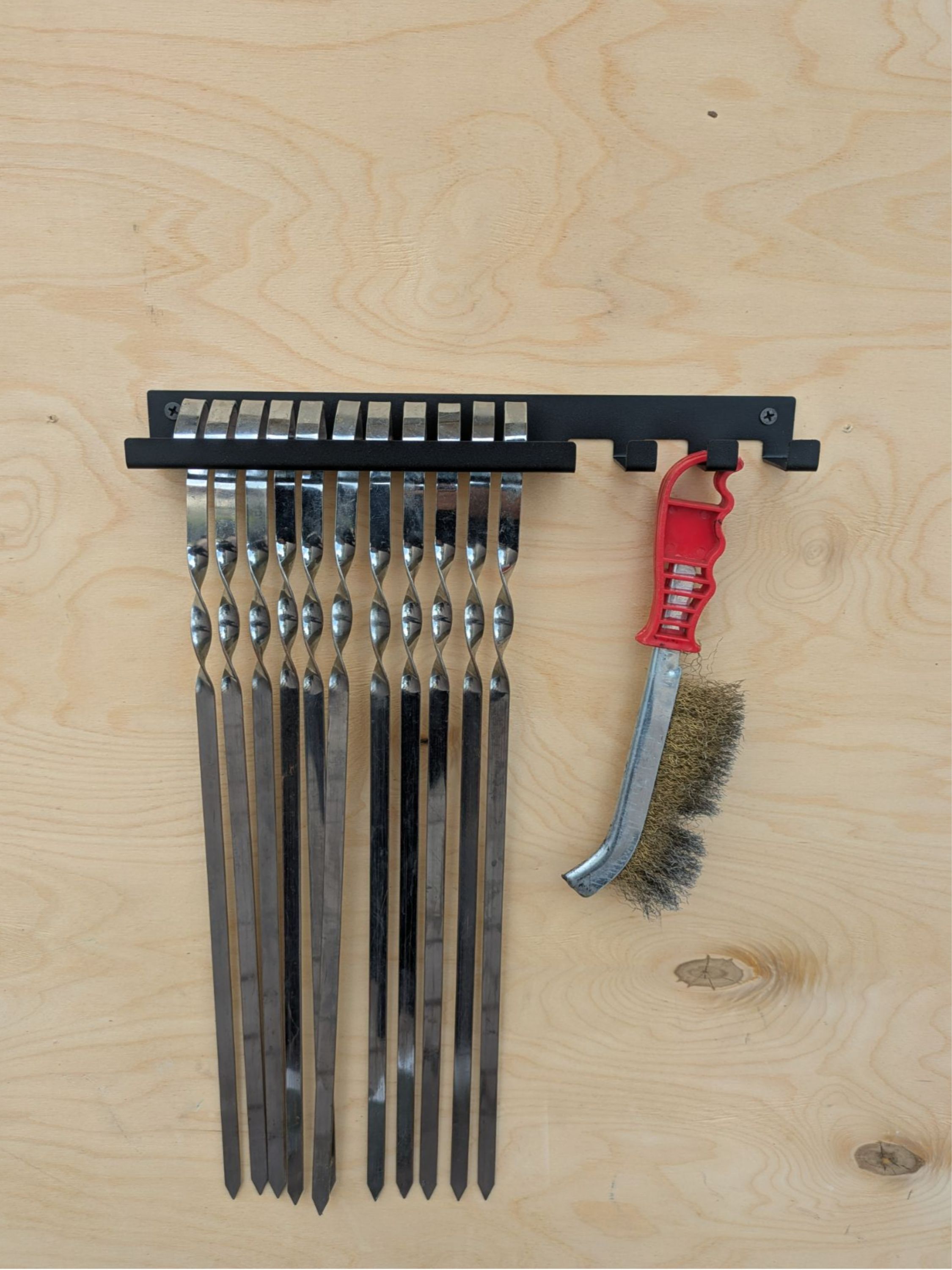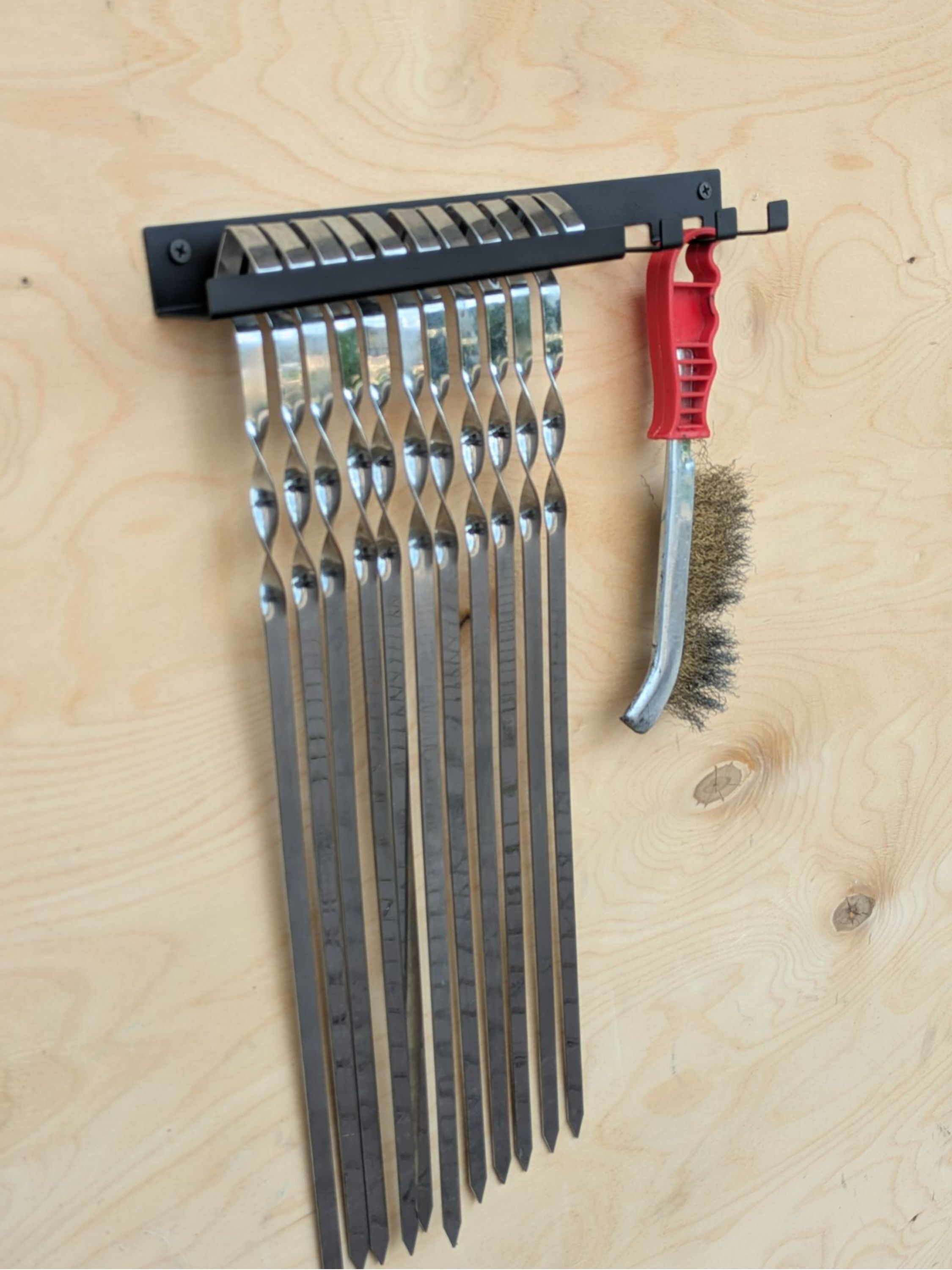 Данная подставка поможет вам держать шампуры под рукой, не занимая лишнего места.