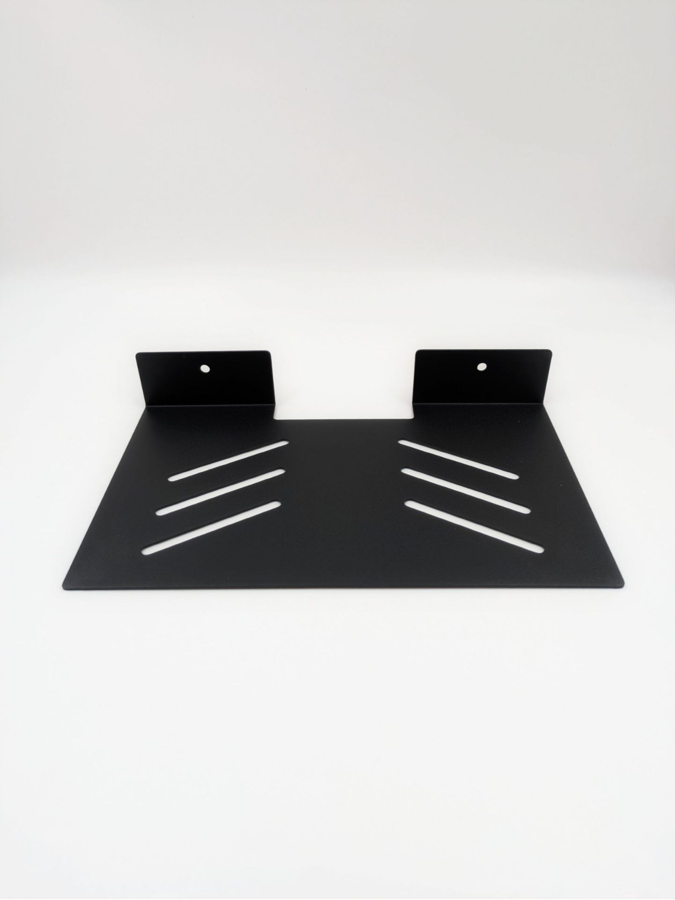 Полка изготовлена из прочного металла толщиной 1.5мм , что обеспечивает надежную поддержку и защиту для ваших ценных устройств. Она имеет оптимальные размеры и форму, чтобы легко интегрироваться в вашу домашнюю систему развлечений.