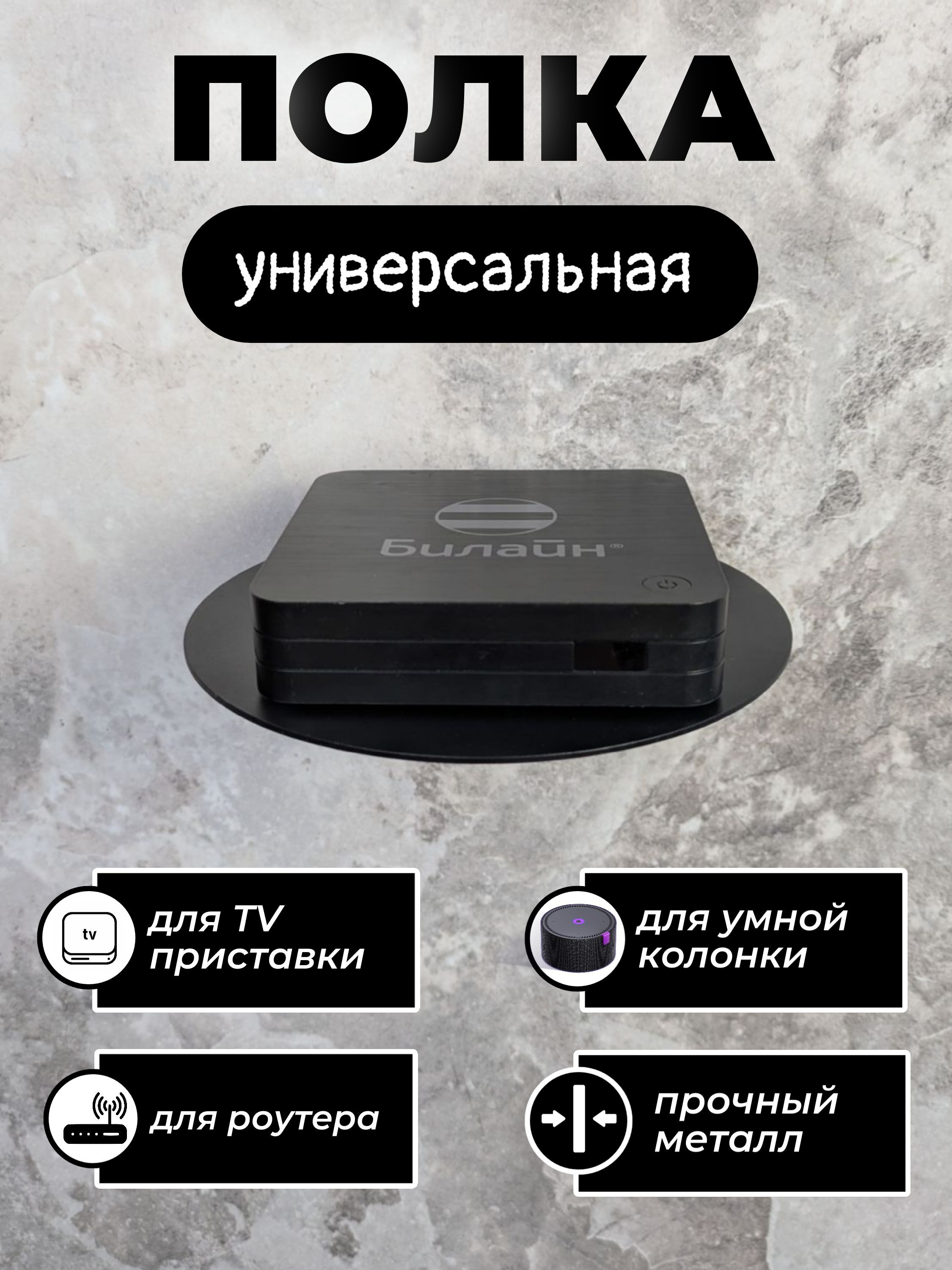 Полка для тв приставки, wifi роутера, умной колонки, игровой консоли: компактное и удобное решение для вашей электроники. Наша полка предназначена специально для размещения и хранения устройств, таких как ТВ приставки, wifi роутеры, умные колонки и игровые консоли, а также подойдет для других предметов, таких как книги, цветы и т.д.