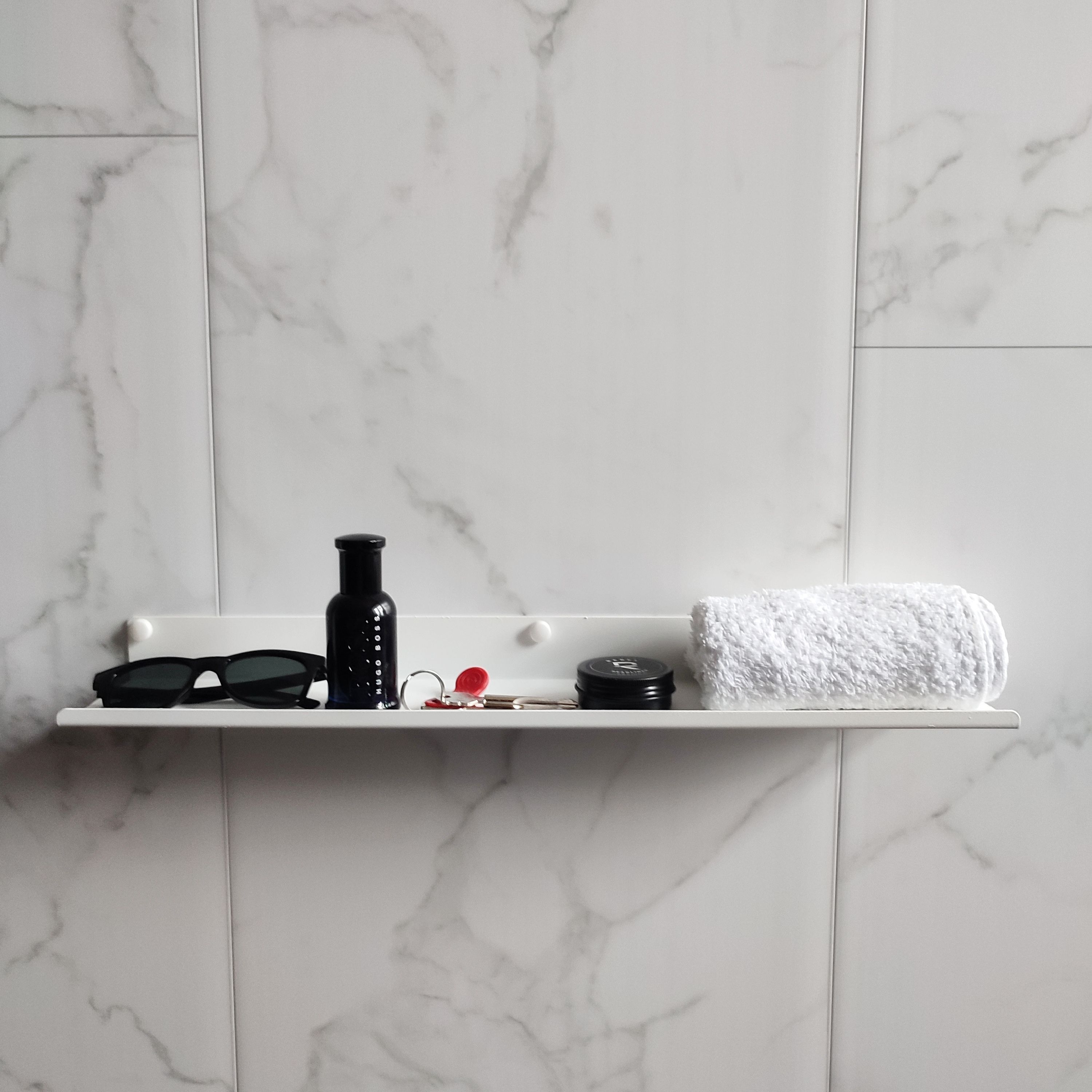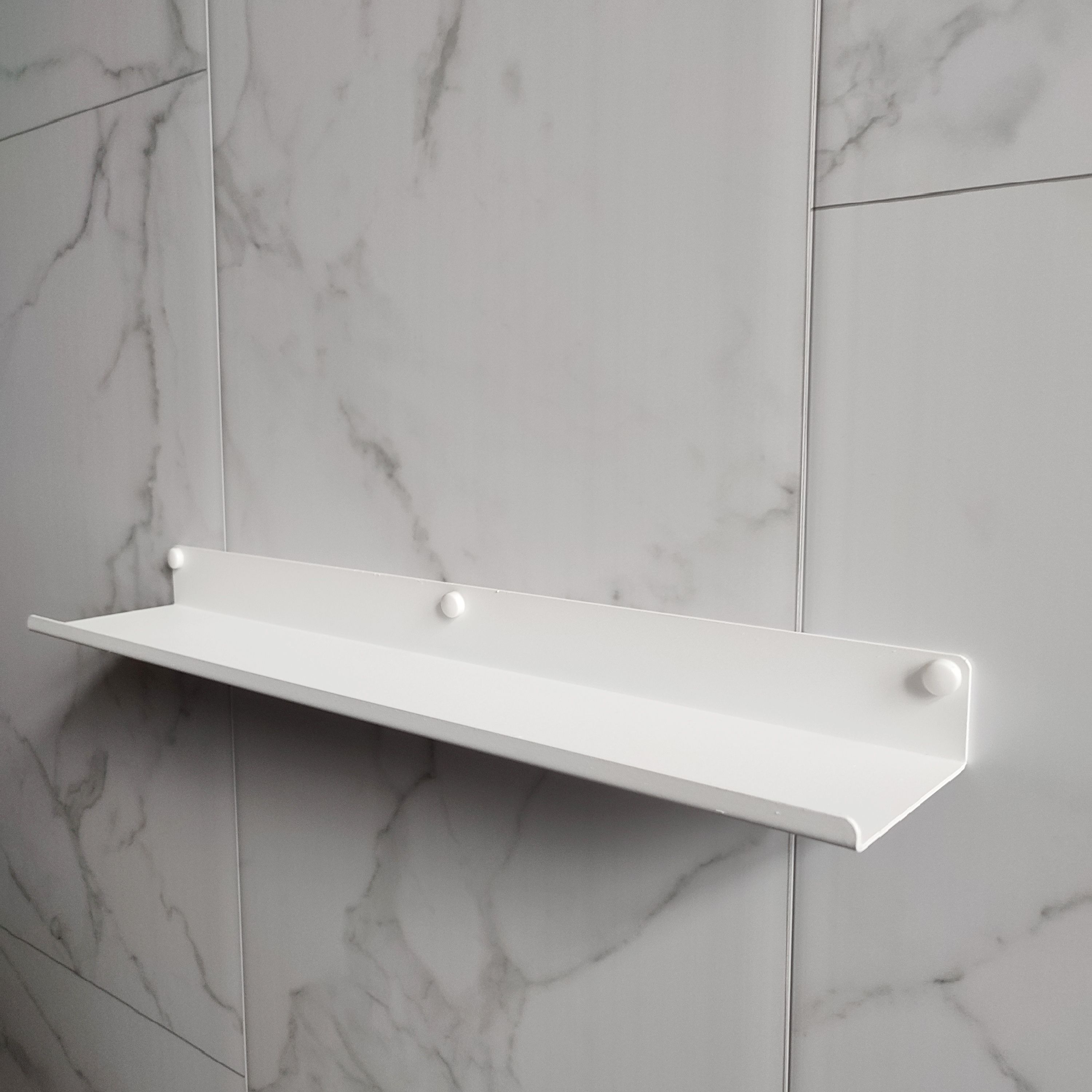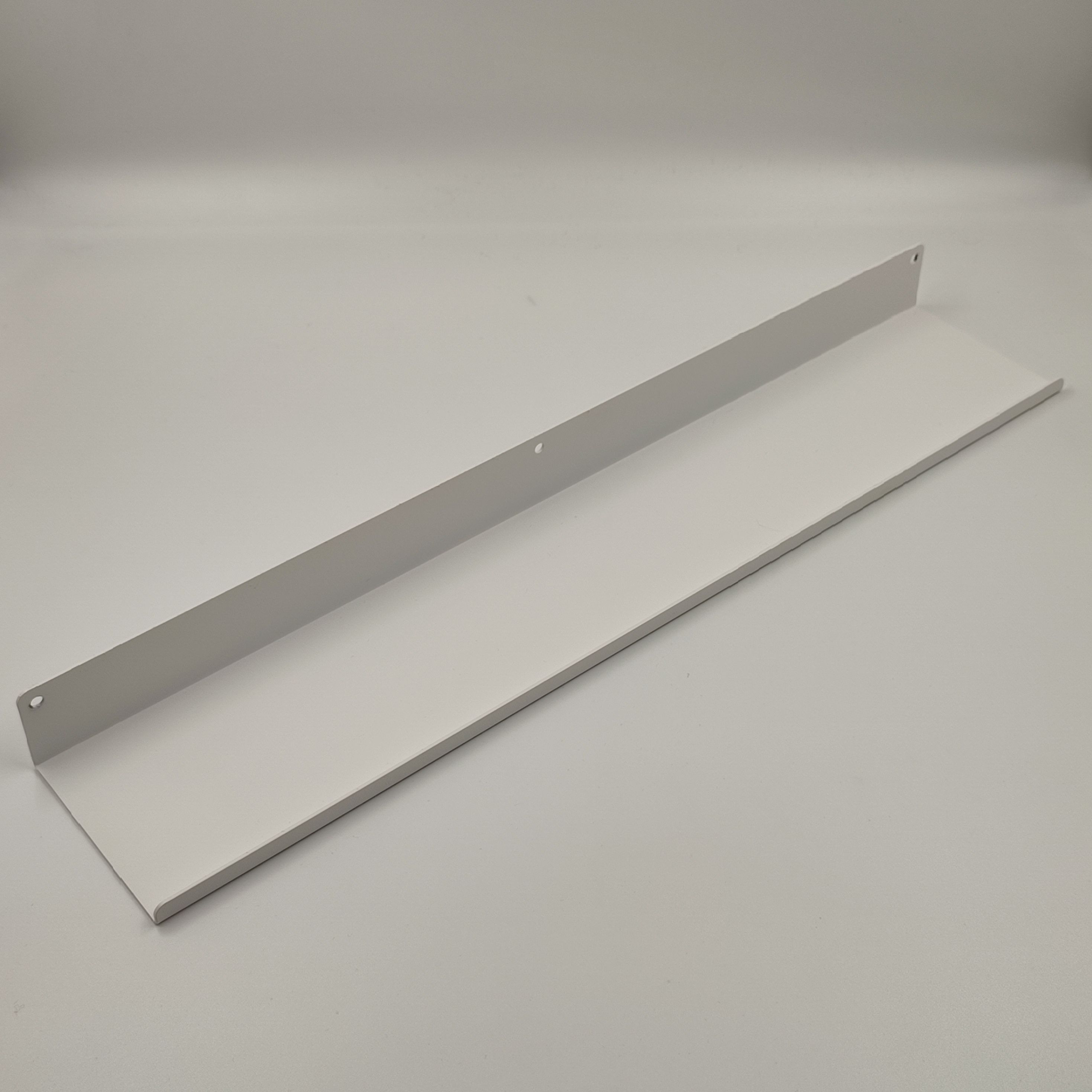 Полка изготовлена из качественной стали и окрашена порошковой краской с эффектом "муар". Данный эффект придает текстуру на изделии создавая неповторимый внешний вид, защищая от коррозии и окисления на длительное время пользования. Применение такой полки возможно во влажных помещениях. Все края полки имеют скругления - что обеспечит эргономичность и безопасность при эксплуатации. Передний бортик обезопасит от падения расположенных на полке предметов.